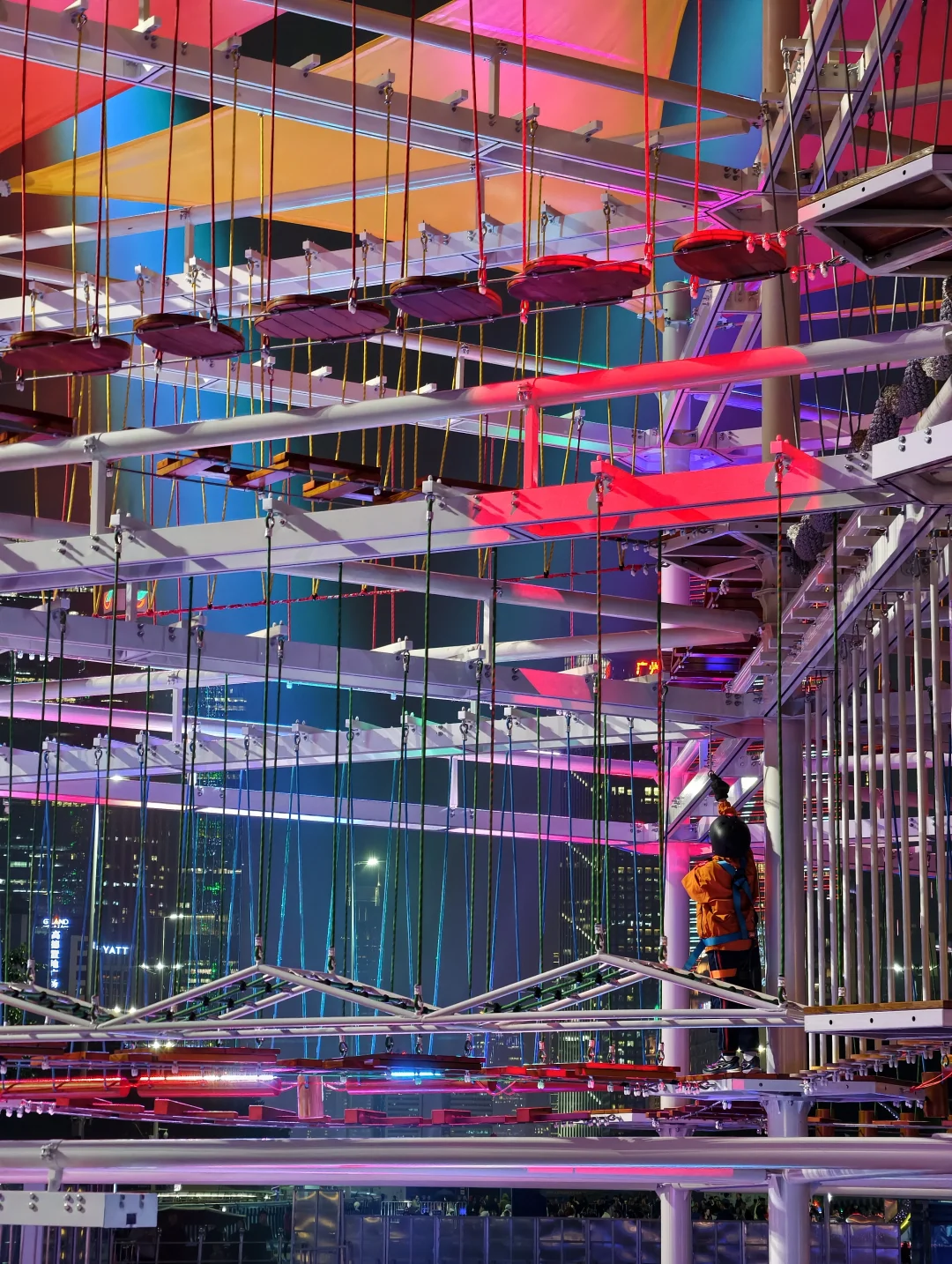 强烈建议夜幕降临的时候来玩,光线好美,仿佛是一场五光十色的灯光秀,这一波海心沙赢麻了,又多了超多广州塔打卡机位了。