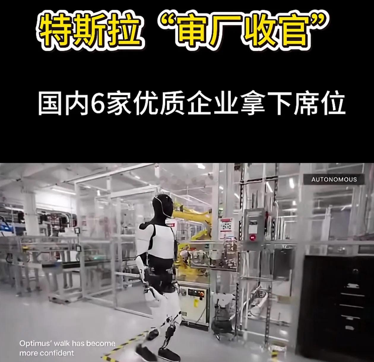 独家!特斯拉Optimus全球审厂落幕,中国6家供应链企业强势入围!据产业链消息,特斯拉Optimus(擎天柱)人形机器人全球供应商审核已正式收官。在严苛的技术、产能与品控筛选下,中国大陆共有6家优质企业成功拿下核心席位(拓普**、三花**、双环**、鸣志**、浙江**、恒立**),覆盖精密减速器、力矩传感器、无框电机、灵巧手执行器等关键环节。这6家企业多为深耕机器人核心部件多年的“隐形冠军”,部分已进入小批量交付阶段,有望在2026年特斯拉Optimus试产中扮演关键角色。此次入选意义重大,代表着中国高端制造能力获全球科技巨头认可;打破以往特斯拉供应链以美日为主的格局;为人形机器人国产化链注入强心剂——从能做迈向被选中。当前,特斯拉2025年已启动Optimus小规模量产,2026年实现全面商用。而中国凭借完整的机电一体化产业链+快速响应能力,正成为其降本与规模化落地不可或缺的一环。对资本市场而言,这6家企业的浮出水面,或将点燃新一轮人形机器人主题行情。机构预测,2030年全球人形机器人市场规模将突破2000亿美元,而中国有望占据超40%的供应链份额。财经A股小黄豆自曝某男明星火了后把自己拉黑