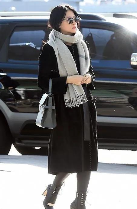 54岁李英爱的中年穿搭,高级感藏不住 54岁李英爱的机场穿搭也太有品味了!一身黑色长款绒面大衣气场拉满,简约的纯黑内搭+黑丝裤袜利落又显瘦,脚踩黑色系带高跟靴,将优雅与酷飒完美融合。 不得不说,李英爱的穿搭审美真的在线,简约大气的搭配,越看越有味道~