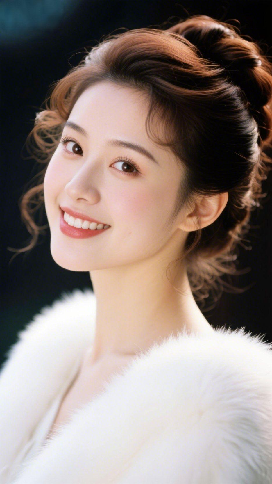 绒暖里的柔意笑靥 白绒轻裹肩颈时,像把冬夜的月揉进了软絮中——暖软的质感裹着温缓的气息,是寒天里最妥帖的舒展。 发梢挽作松松的髻,几缕卷丝垂落颊边,像把风的轻柔缠在了发间。她抬眼含笑,唇上淡粉如初绽的梅,笑意漫开时裹着绒绒的暖,像冬阳的光落进了眉眼弯处。 原来最动人心的从不是繁复妆饰,是这绒暖与柔笑的相衬里,藏着生活的软:是寒天里的轻暖,是日常中的舒展,是目光相触时,便能接住的温柔。 冬日柔暖氛围感 轻熟风妆造美学
