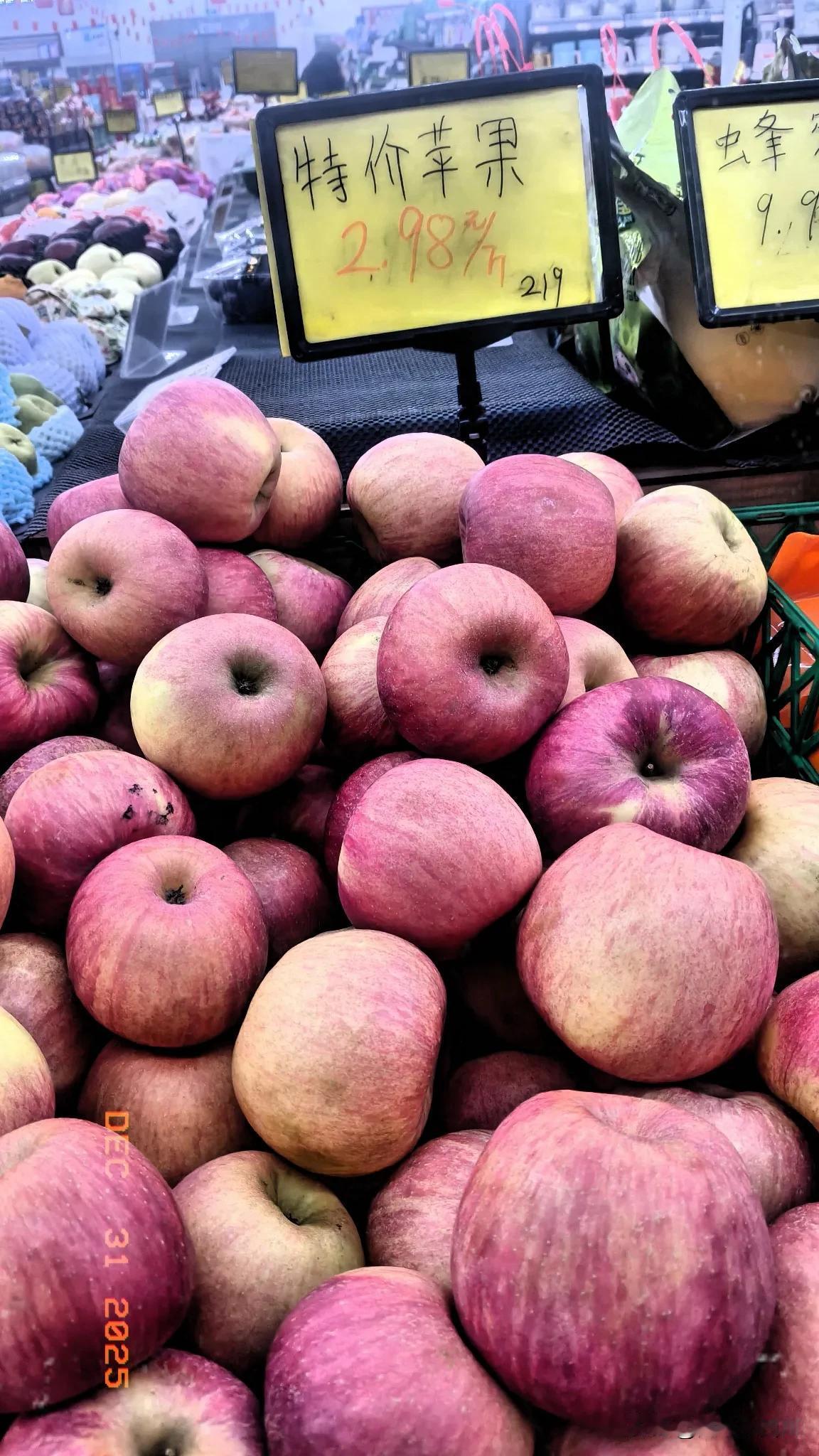 又大又红时大苹果才二块九毛一斤 估计一个苹果就有一斤了 不知道是哪里产的 早上送孩子去了学校 准备去附近的超市买点小零食回来 下午给孩子带去学校 因为老师说下午开元旦运动会 让小朋友们可以带点小零食 来到最近的一个超市,去到零食去,选了一点饼干 路过水果区的时候,看见货架上的苹果又大又红,估计一个苹果就差不多有半斤以上。 再看价格二块九毛八,真是把我惊到了,我这是多久没吃苹果了,仿佛记得像这样的苹果要八块一斤呢 今年的苹果真的是实惠 不过我还是没买,因为我现在没收入 钱得省着花,不然撑不到找到工作的时候 亲爱的朋友们,你们说这样又大又红的苹果卖二块八一斤是贵呢还是便宜