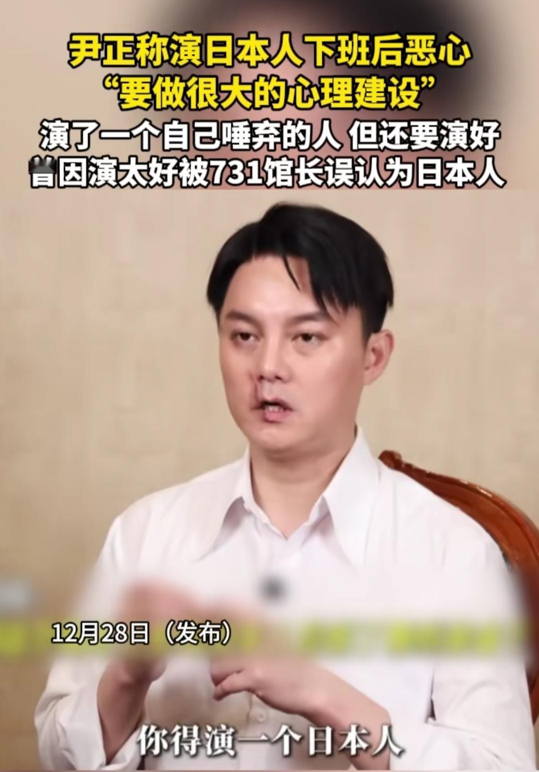 谁能想到,演员演戏竟会演到下班恶心?尹正在采访里说,接连演了两个日军角色,每天代入那种残暴虚伪的状态,收工后都得做很久心理建设,甚至忍不住觉得恶心,杀青后还要靠旅行健身才能“出戏”。 他本是满心渴望演中国军人,主动向导演自荐,结果“阴差阳错”接了反派,还自嘲“想演八路变八嘎”。为了还原角色,他增重二十斤、练日式口音,片场刻意孤立自己保持阴郁气场,连刷牙都在默念台词找状态,可心里始终拎得清:绝不能美化侵略者。 现在太多演员忙着轧戏抠图,把演戏当捞金工具。但尹正的纠结与坚守恰恰证明:好演员的敬业,从不是装模作样的“卖惨”,而是带着民族敬畏去塑造角色,用演技撕开历史的伤口,让观众记住伤痛。这份不敷衍、有底线的表演,远比流量和热度更值得被看见。