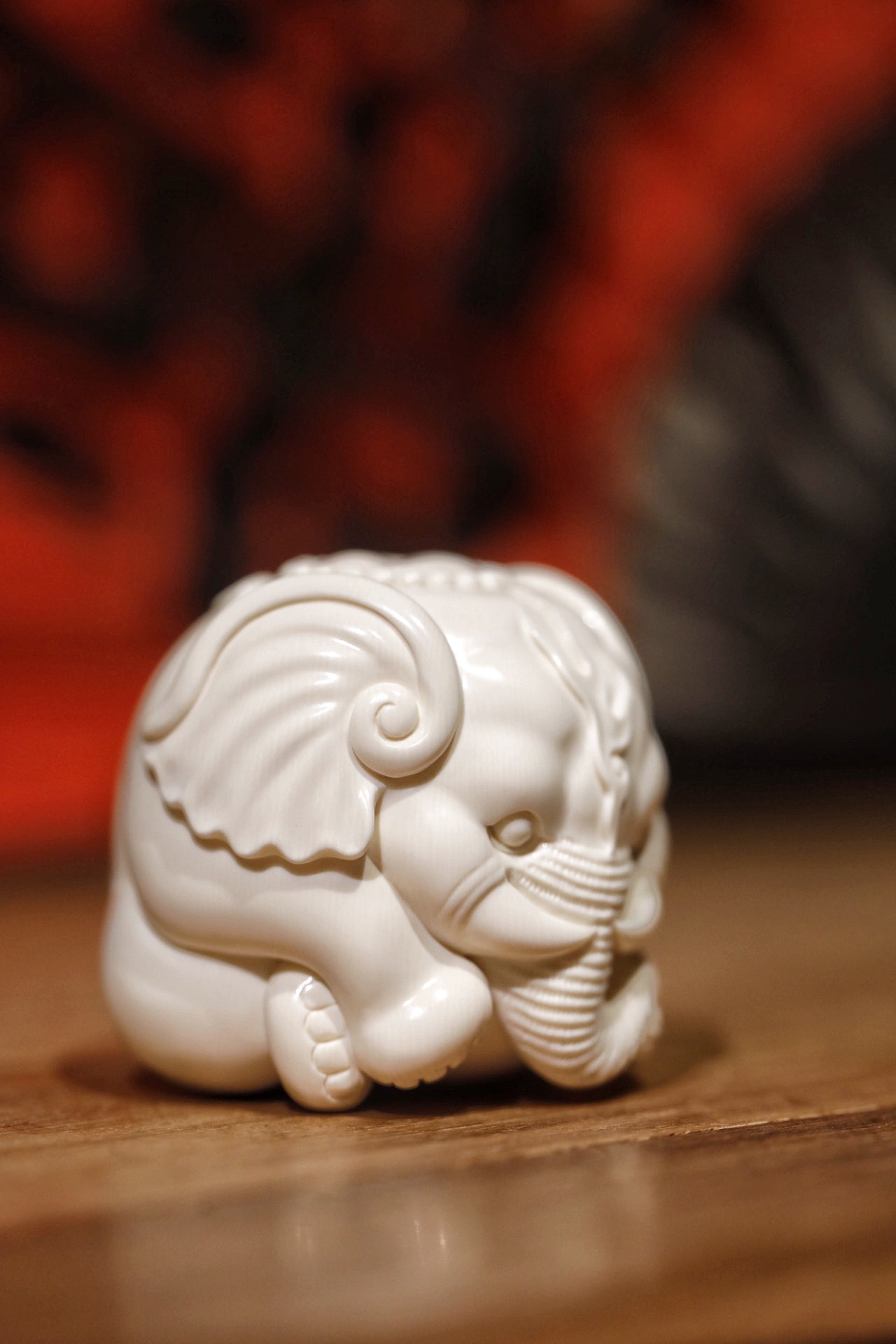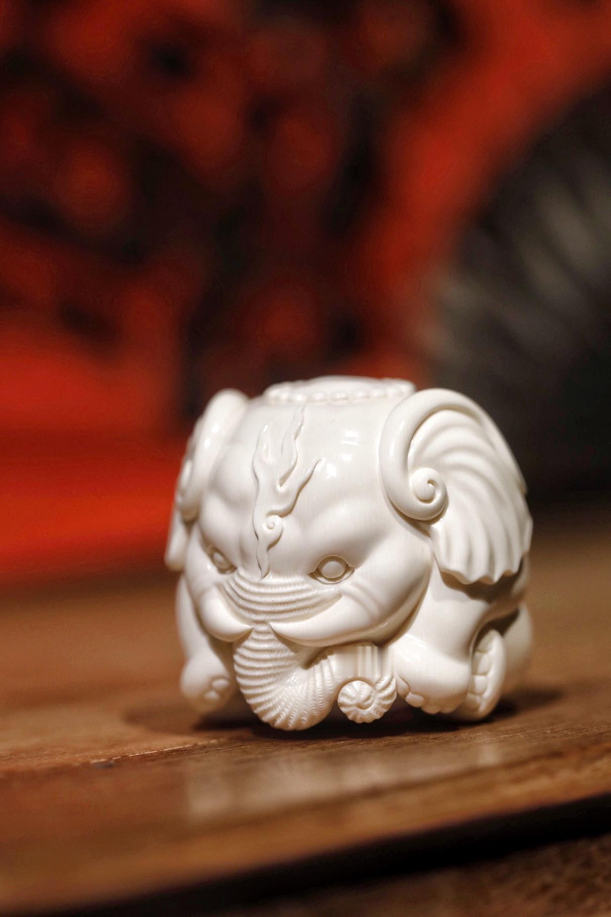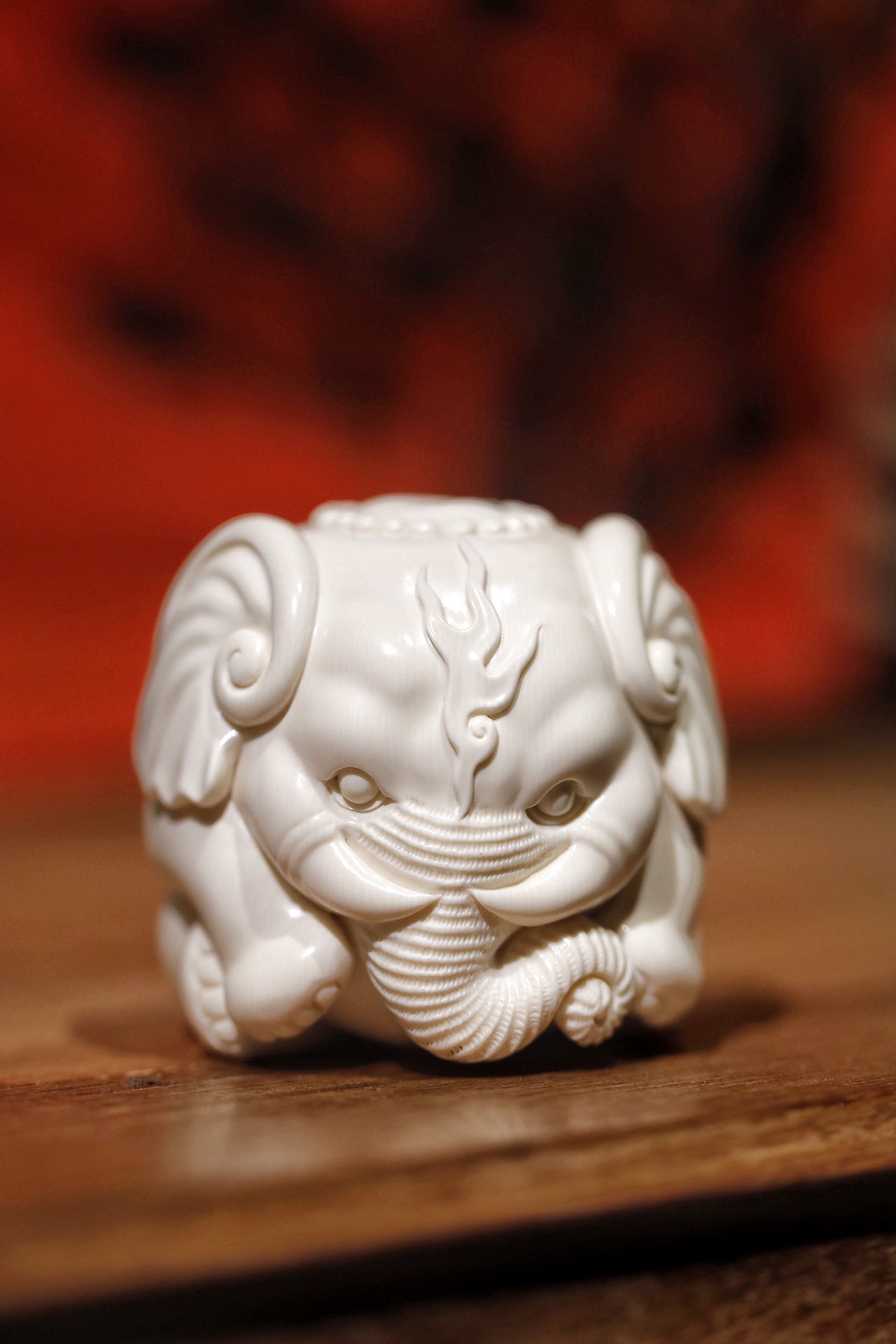猛犸|吉象牙质如凝霜雪,圆雕福象雍容。置案呈祥,寓万象更新,太平有象。温润莹白,禅意自生。5.5×5.5×5.2cm重145g