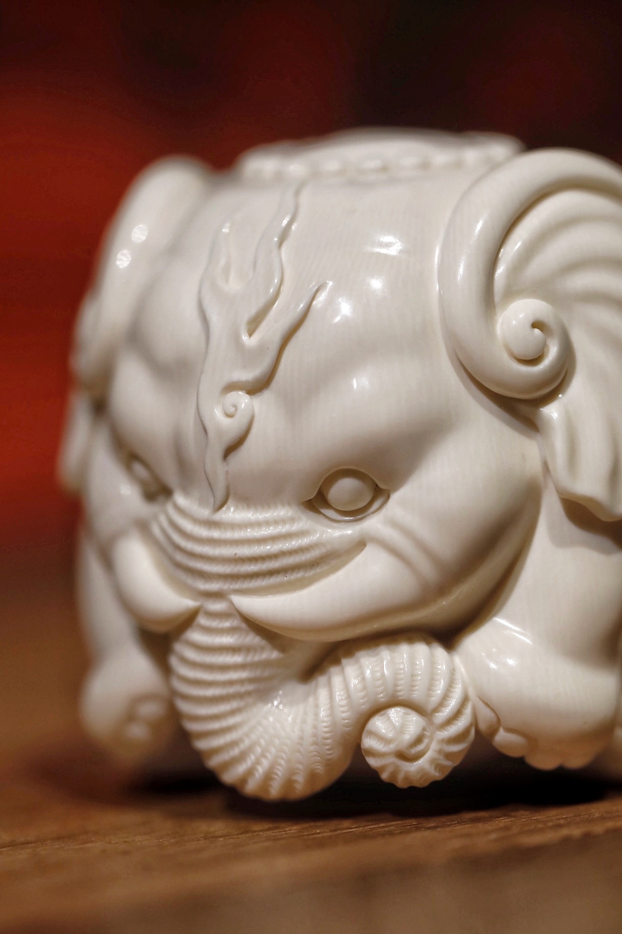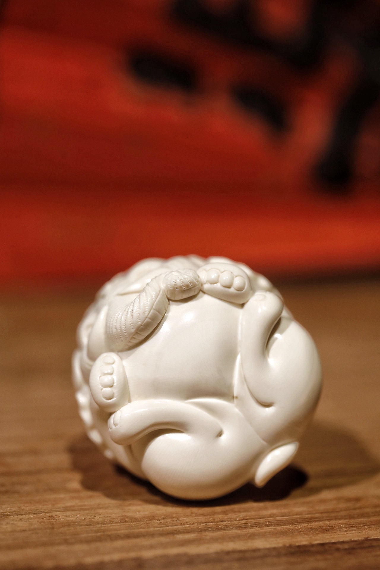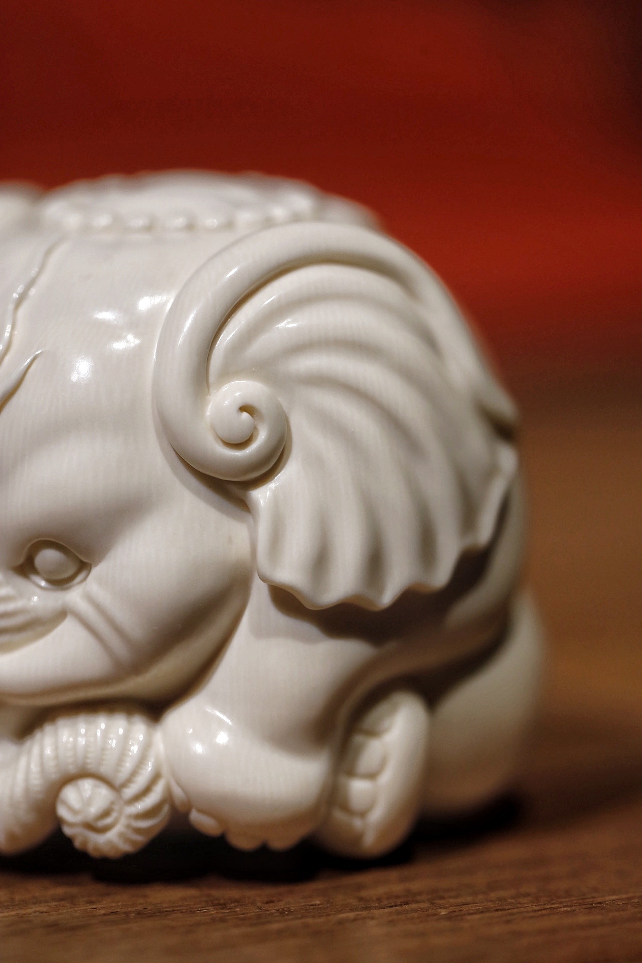 猛犸|吉象牙质如凝霜雪,圆雕福象雍容。置案呈祥,寓万象更新,太平有象。温润莹白,禅意自生。5.5×5.5×5.2cm重145g