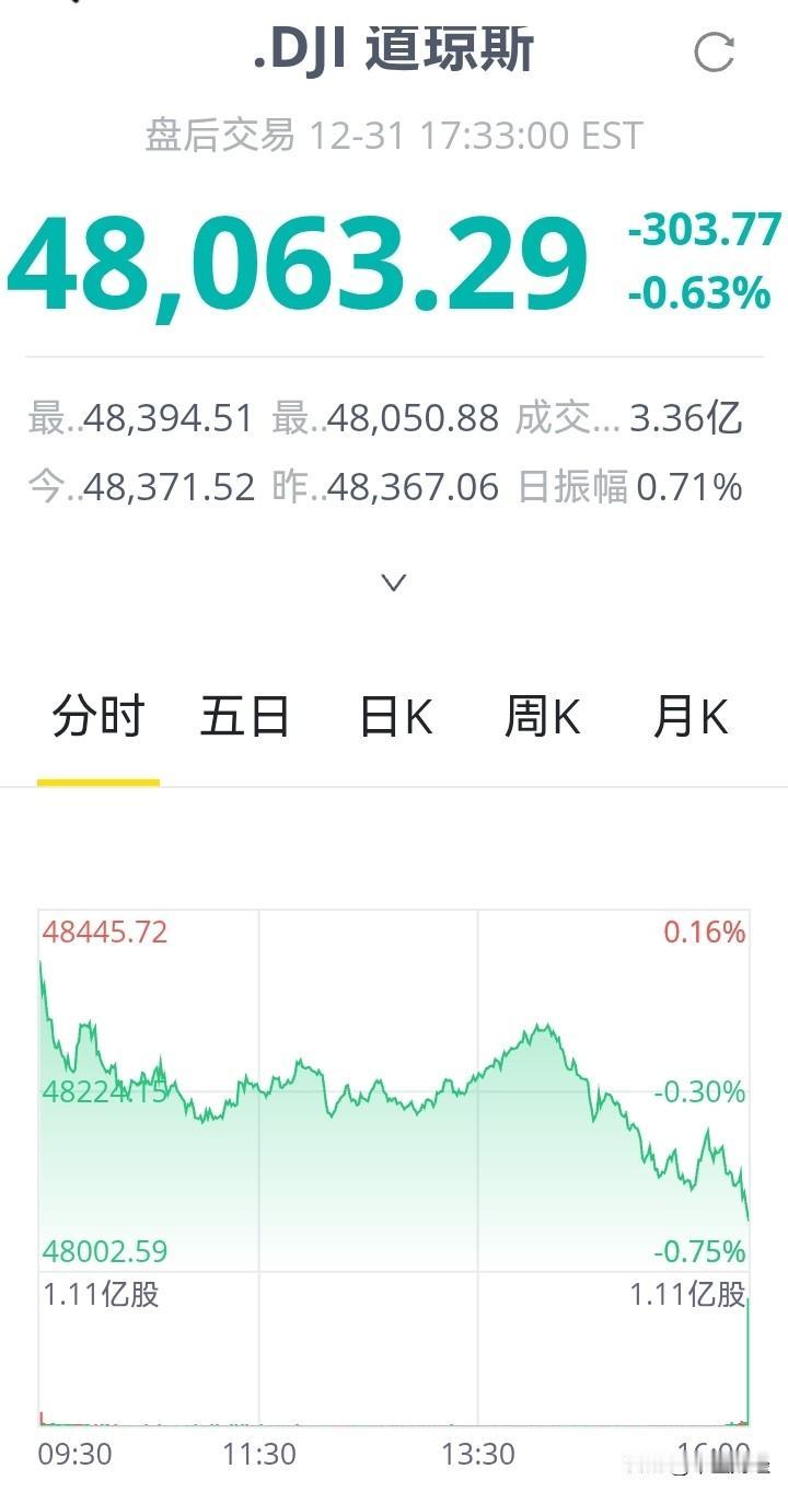 跨年时美股这走势,真是让人“眼前一黑”!6000多只美股,下跌家数达4110家。 12月31日深夜,美股三大指数微跌,道指跌近303点,纳指跌约0.76%,中概股更弱!。 原本被期待的“圣诞行情”也没启动,临近12月最后几天,市场动能明显减弱。交易员受假期影响倾向推迟决策,不少人因今年收益不错选择落袋为安。 历史上标普500指数年涨幅达20%后,次年1月回报率常持平甚至回撤,美股新年首月怕是不好过。