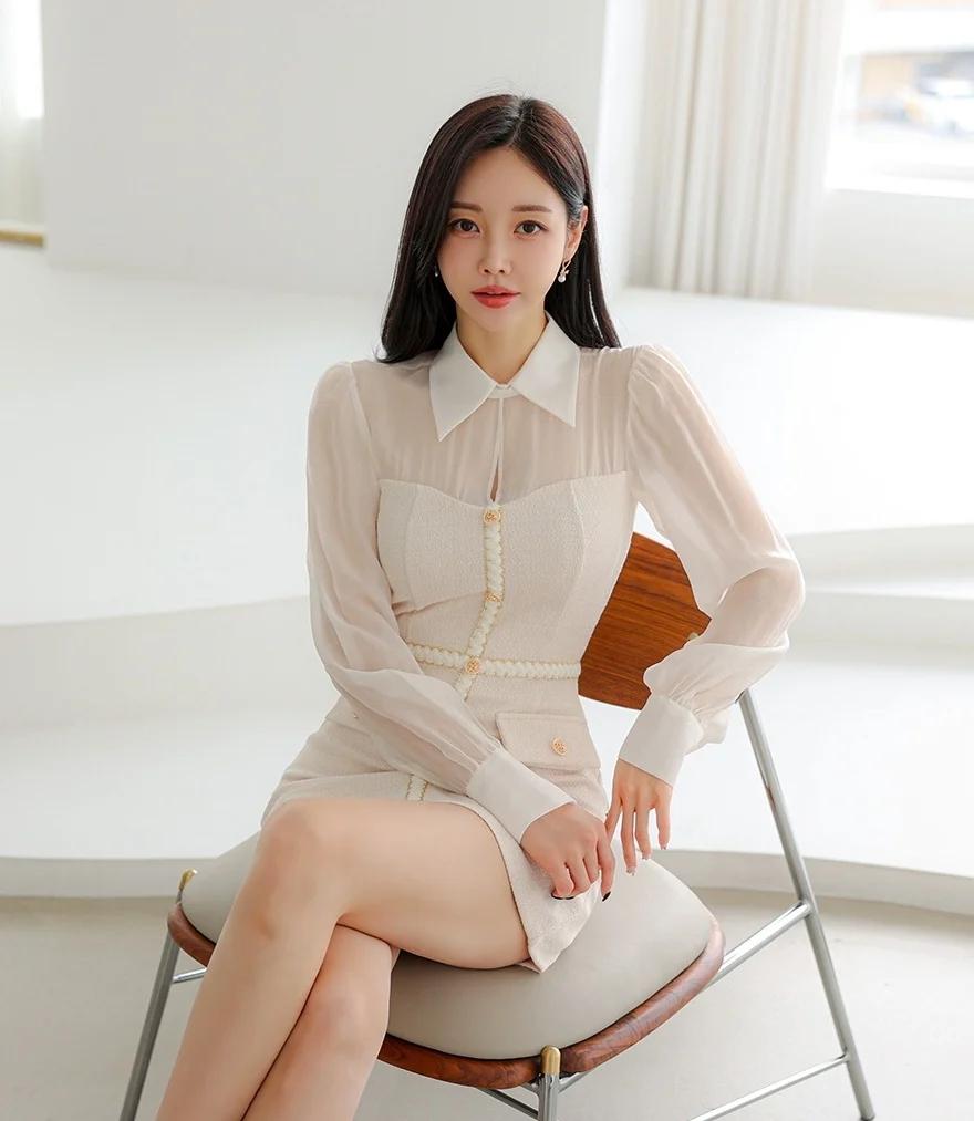 孙允珠的穿搭简直绝了!就拿那套浅米色连衣裙搭配珍珠耳环来说,轻轻松松就将女性魅力展现得淋漓尽致。 简约的浅米色连衣裙巧妙地勾勒出完美身形,外搭一件黑色短款小外套,瞬间让层次感与时尚感达到顶峰,还优化了身材比例。黑色丝袜搭配高跟鞋,既协调又美观,再配上黑色菱格纹链条包,轻奢质感扑面而来。无论是逛街还是喝下午茶,这身穿搭都再合适不过。 还有那条米白露肩印花长裙,灵动的泡泡袖设计,闪耀的珍珠项链,搭配气场十足的红唇妆,魅力非凡。她优雅地交叠着穿着高跟鞋的双腿,在绿植背景的衬托下,宛如画中走出的精灵,柔美浪漫到了极点。 分享今日之感悟 今日穿搭(OOTD)