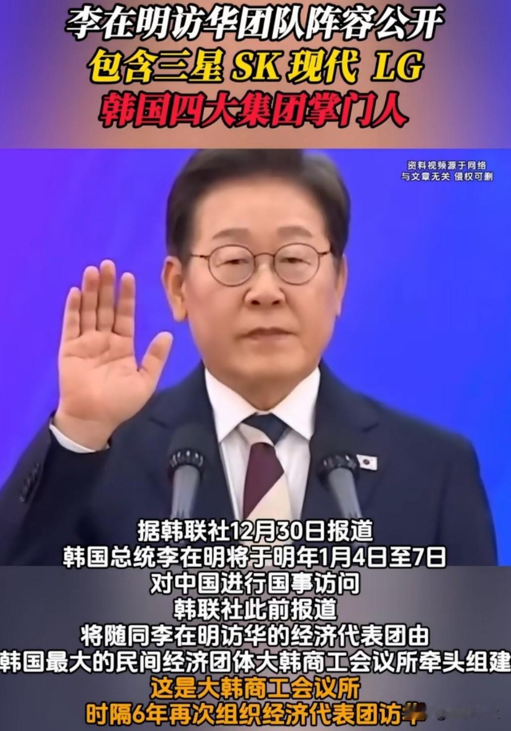 韩国总统李在明访华随行经济代表团规模确定为203人,三星电子副会长李在镕、现代汽车会长郑义宣、LG集团会长具光谟等38位大企业掌门人悉数在列。这是中韩建交以来最大规模的企业代表团,将重点考察新能源和半导体合作项目。 分析指出,韩国企业急于修复对华关系:2025年韩国对华出口下降18%,尤其半导体设备受限影响显著。此次随行企业涵盖汽车、电子、化工等全产业链,预计将签署超200亿美元合作协议。但有专家提醒,中韩在动力电池领域存在直接竞争,合作需平衡技术转让与市场准入的关系。