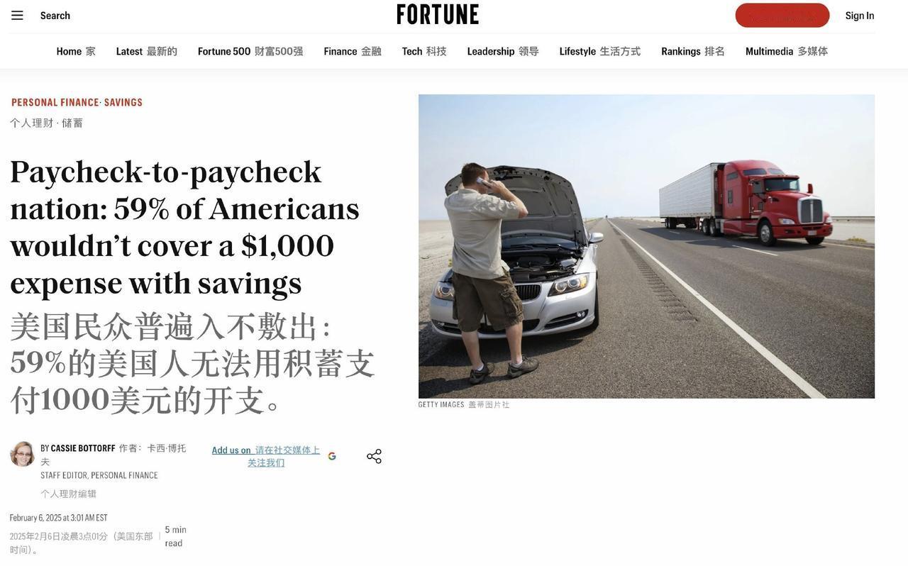 美国民众普遍入不敷出: 59%的美国人无法用积蓄支付1000美元开支。难怪美国人自己都说每个美国人距离破产可能就一两个发薪日(美国是周薪制) 这要是东大60%的人拿不出1000块存款,殖人殖畜不得整天赢麻了