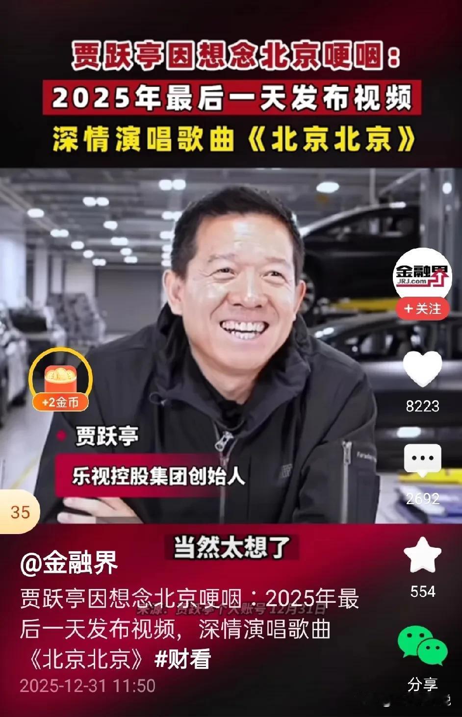 新年了,贾跃亭深情望北京,那是多么的想家 回来吧,漂在美国的那日子也不太好过 家里有父母妻儿,还是回来的好 不是下周 毕竟 ,月是故乡明 在外流浪还不如回家自首 毕竟,乐视还在,还可以东山再起