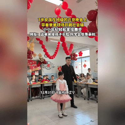 辽宁这对父女,元旦晚会炸场了!12月31日班级晚会上,7岁小丫头拉着爸爸就冲上舞台,社会摇的音乐一响,俩人脚步“哐哐”踩得那叫一个齐——女儿扭胯甩头有模有样,爸爸跟着蹦跶得比谁都嗨,台下同学尖叫快掀了屋顶。 你看那画面:小姑娘眼神带劲儿,动作比视频里学的还溜;爸爸没半点拘谨,跟着节奏晃胳膊踢腿,脸上笑开了花。哪是表演啊,分明是父女俩在台上撒欢儿,把平时的快乐全抖落出来了。 网友说得在理:“这爹太会了!孩子在同学面前倍儿有面!” 可不是嘛,比起端着架子的家长,愿意陪娃疯、陪娃闹的,才是孩子最骄傲的“显眼包”。 你家娃表演时,你敢这么放开陪玩吗?来评论区聊聊,觉得这对父女可爱的,赶紧转发,让这份快乐传染更多人~