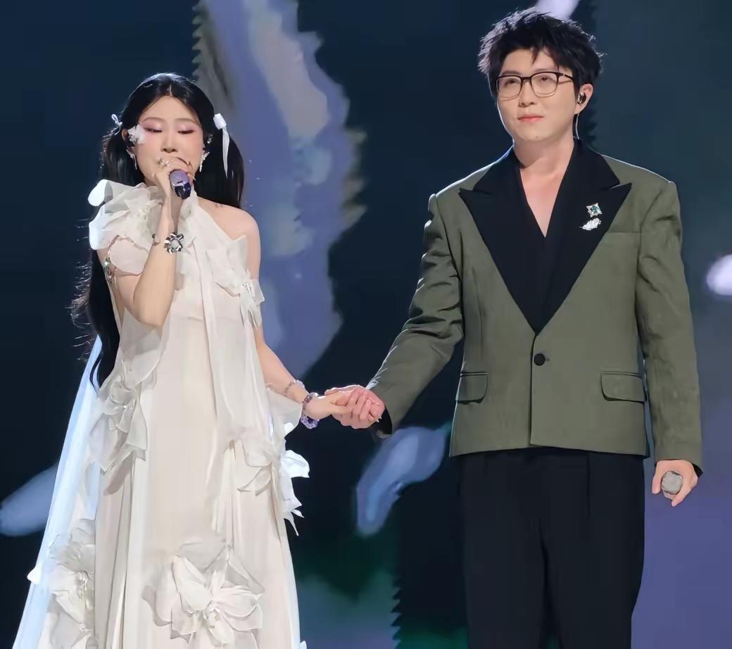 哦豁!刚出道就能登上江苏跨年晚会,还能与毛不易牵手合作,这资源相当不错啊! 只不过实力稍显逊色,她和毛不易合唱了一首《不染》。 沈佳润一开口便抢拍跑调,而毛不易却不慌不忙,一发声瞬间稳住局面,歌声质感立现,这便是实力的体现。 原来沈佳润是沈小阳的女儿,看来这小姑娘是被强行捧出道的。 毛不易不仅唱功了得,人品更是没得说,此时还在一旁帮沈佳润找拍子。