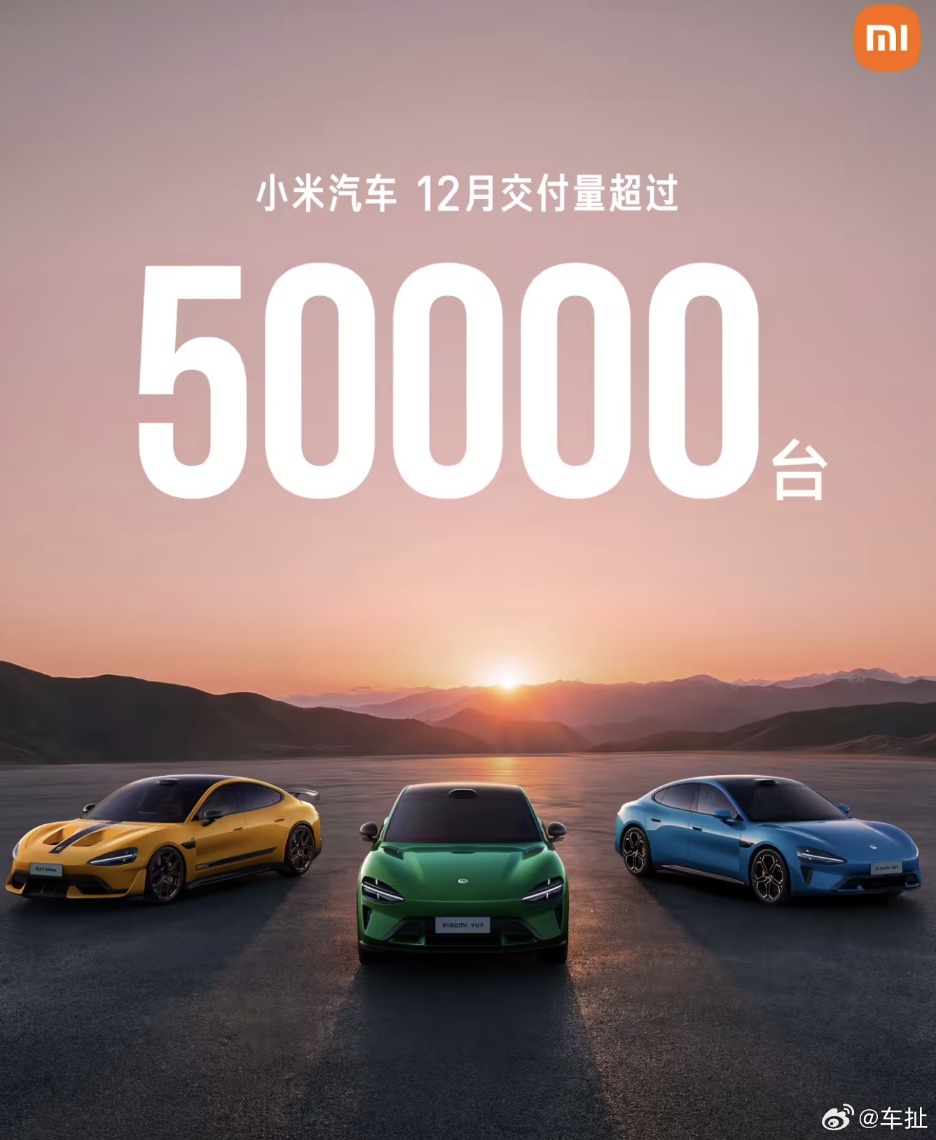 小米汽车官方刚刚汇报了交付新进展:2025 年 12 月,小米汽车交付量超过 5 万台。小米汽车