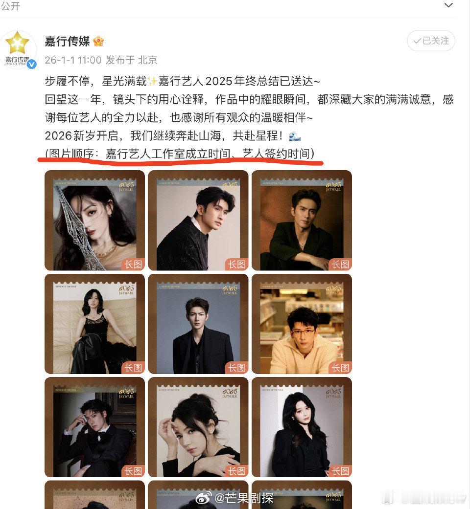 疑似嘉行回应迪丽热巴解约嘉行这是在回应迪丽热巴解约吗 嘉行写的“按照签约时间排序”,这是不是续约时间啊