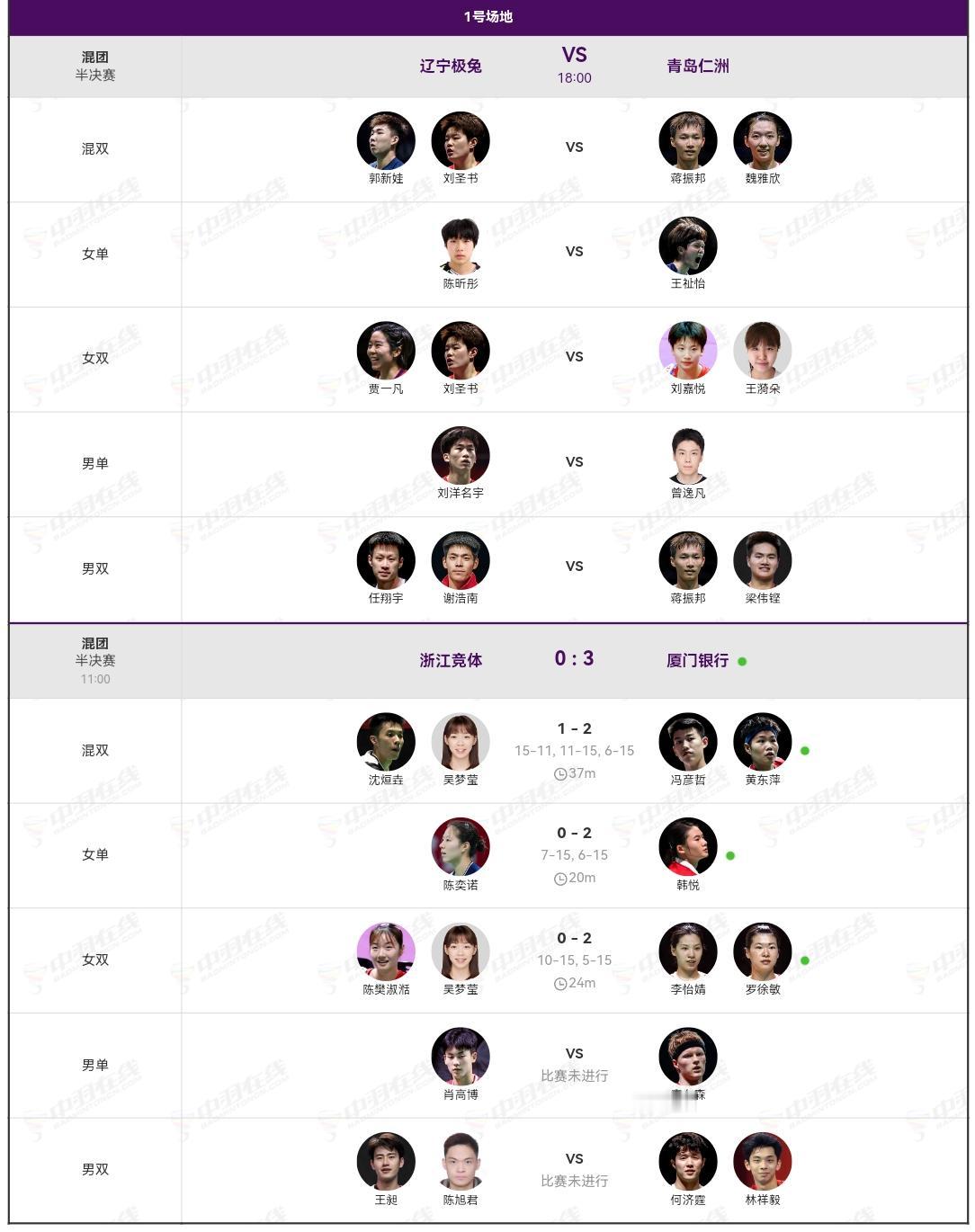 新年元旦日,羽超联赛开始半决赛。 上午结束的比赛,厦门银行胜浙江竞体,进入明天的决赛。 另一场半决赛将在晚上18点开始。 辽宁极兔对青岛仁洲。