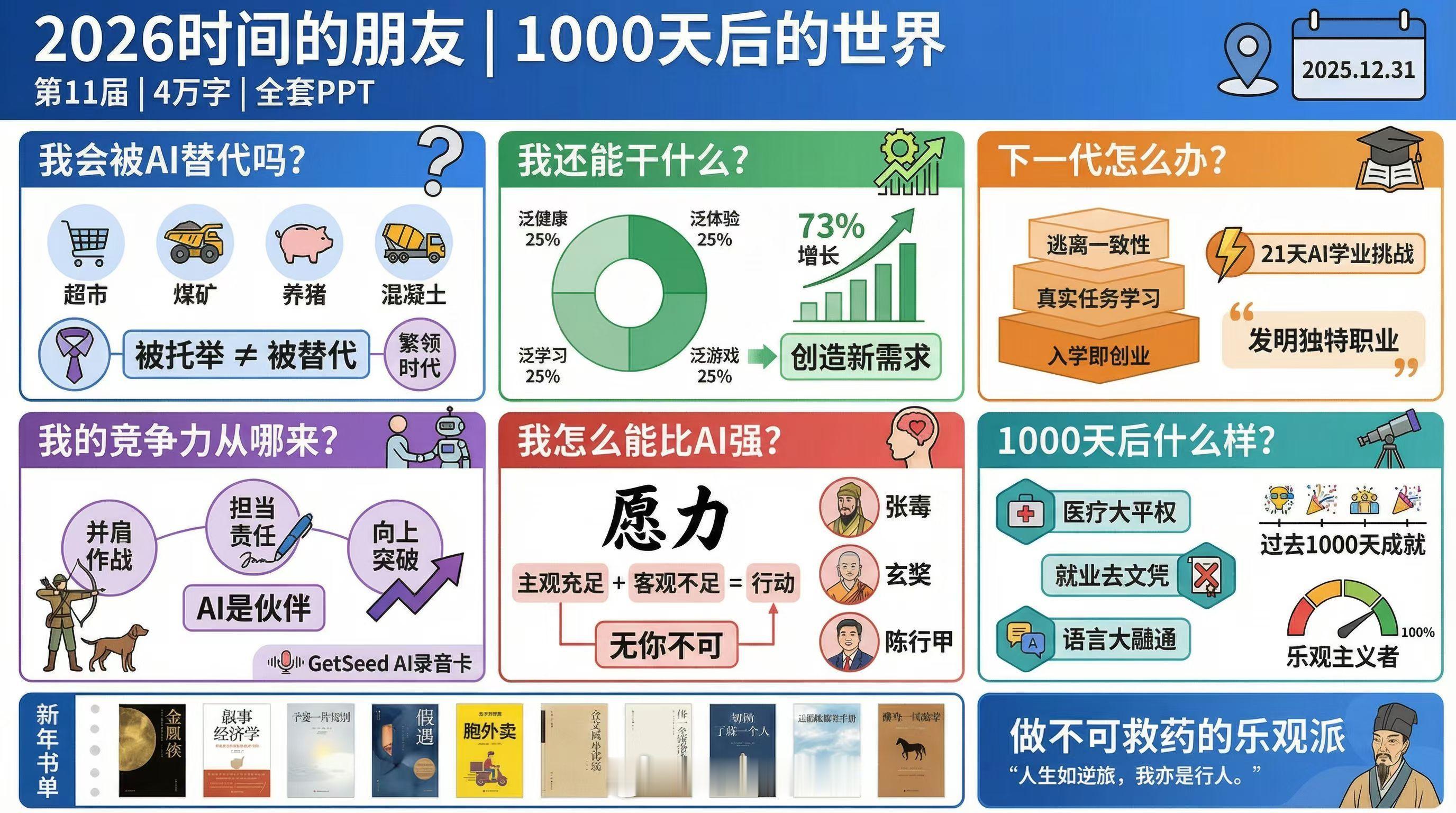 时间的朋友罗振宇《时间的朋友》2026跨年演讲4万字,Ai提炼总结做成笔记AI还做了3个不同版本图!!今早1月1日,我还做了直播解读和如何落地可以看回放,在第四个图片。