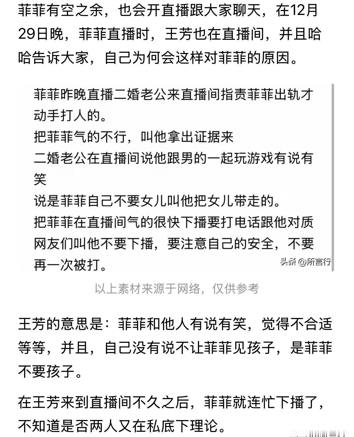 他俩取关那天,深夜的直播镜头抖得厉害。 你看见菲菲抿了三次嘴唇,把涌到嘴边的话咽回去。 她解释过,矛盾始于一次家庭游戏——哥哥和邻居都在,笑声大了些。 王芳当场摔门。 那不是第一次。 但让事态彻底失控的,是王芳在29号深夜闯入她的直播间。 公共评论区,留下几句带刺的“问候”。 菲菲像被按了暂停键,光速下播。 屏幕黑掉前,她的表情不是愤怒,是空洞。 最新动态切割得更锋利:1月3号,菲菲复播,眼眶通红,只字不提感情。 王芳的直播间却热闹起来,日播频率翻倍,话题绕着电商打转,绝口不提“菲菲”二字。 两人主页上,那个小小的“互相关注”标志,已经消失。 暴力不止一种。 肢体碰撞会留淤青,而精神上的切割,伤口是隐形的。 控制欲披着关心的外衣,第一步是切断你与外界的欢声笑语,第二步是闯入并主宰你最后的自留地。 当一段关系需要你不断道歉,为你的正常快乐道歉时,你就该听见警报。 健康的爱,是并肩看向窗外同一个方向;扭曲的占有,是逼你拉上窗帘,只做他墙上的影子。 女人真正的觉醒,往往始于一次沉默的取关。 不是恨,是终于看清:有些人的爱,是牢笼精装修。