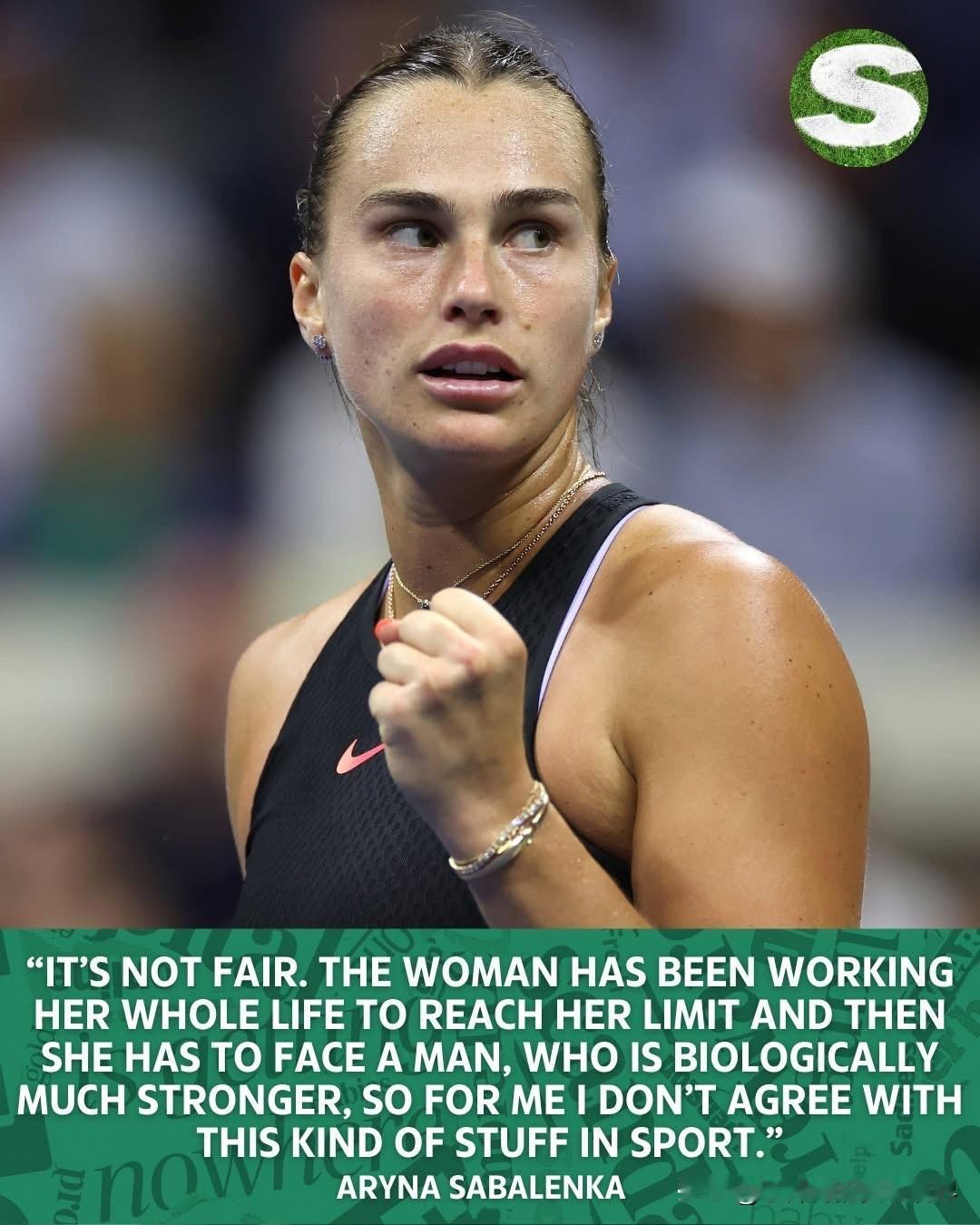 阿丽娜·萨巴伦卡认为,让女性面对跨性别网球运动员是不公平的。 早前萨巴伦卡和“澳大利亚坏小子”克耶高斯进行了一场“性别大战”,尽管修改了诸如女方场地大小等规则,使得比赛尽量平衡,但萨巴伦卡还是以3-6/3-6败下阵来。 这位现任WTA世界第一说:“这根本不公平,一个女性几乎一辈子都在努力达到自己的极限,然后她却不得不面对一个生理上比她强壮得多的男人,所以我绝对反对竞技体育中出现这种现象。” 从性别大战和萨巴伦卡的话中明显反映出一个问题就是男性至少在网球这项运动中是要比女性有优势的,所以你同意萨巴伦卡的观点吗?
