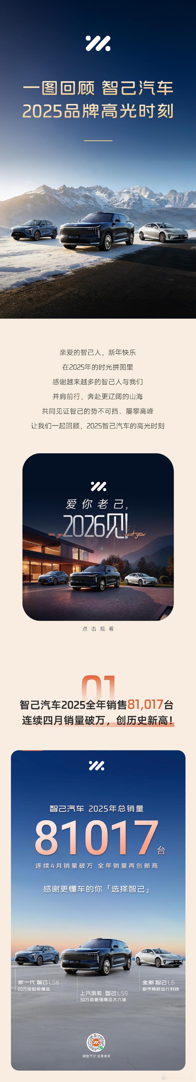 智己汽车今年销量8.1万辆,可惜没有达到10万。估计2026年,智己会把所有的大增程补齐,销量能够达到15万+。智己汽车