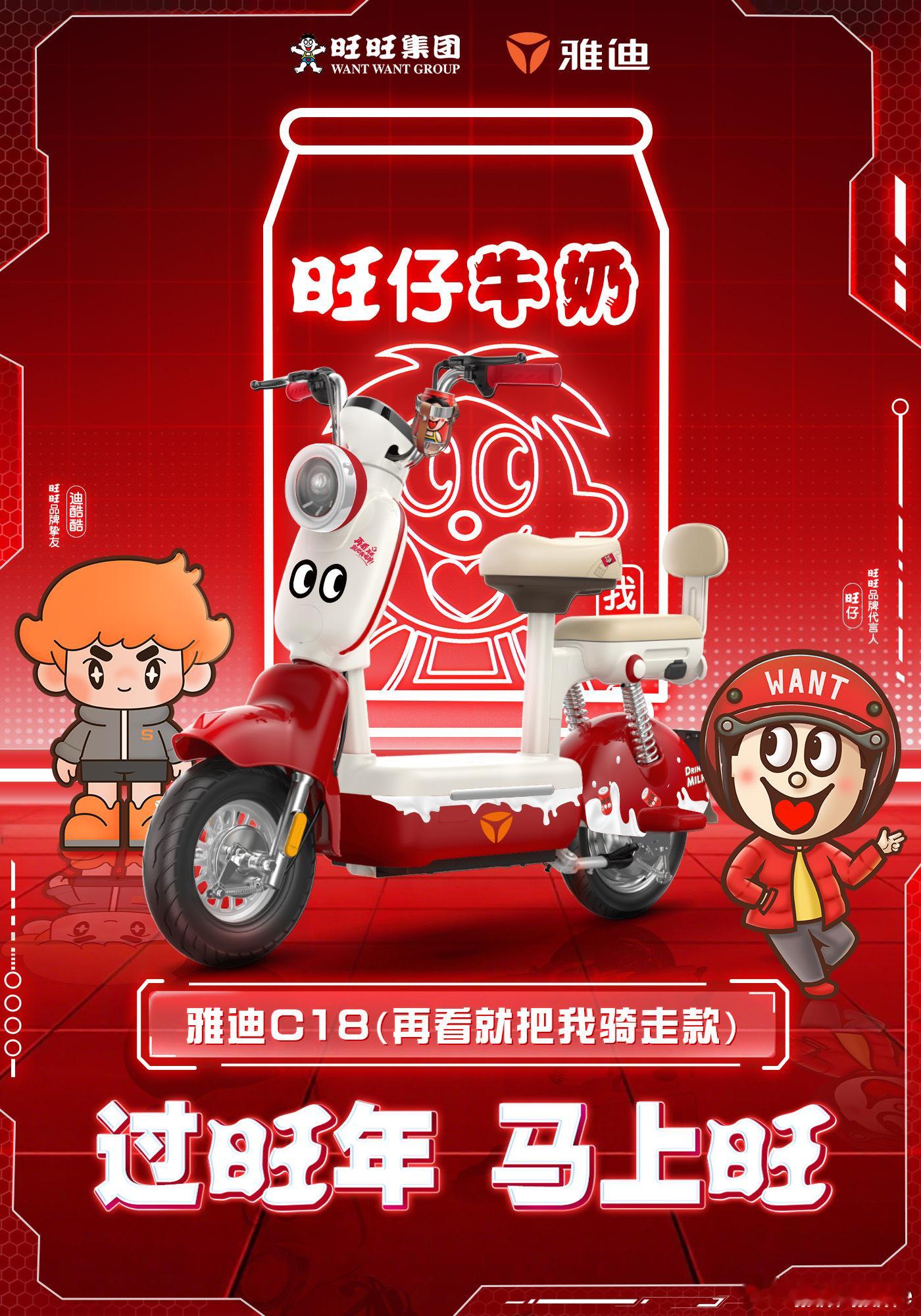 雅迪和旺旺联名造车了哈哈,好梦幻的联名合作,一个是国民电动车,一个是很多人从小吃到大的食品品牌。直到现在旺仔牛奶和旺旺仙贝都是我的最爱。雅迪作为国民品牌,连续八年全球销量第一,累计销量超1亿台。现在越来越多的年轻人选择雅迪,不仅因为它续航长又智能,更因为雅迪造型时尚,符合年轻人的审美,潮流会玩的雅迪除了联名旺旺外,之前还联名过三丽鸥家族和草莓熊等,每款都受到年轻人的追捧。这次雅迪联名旺旺,双国民IP叠加,又精准戳中年轻人,毕竟只有骑上旺旺,才能新年旺旺。