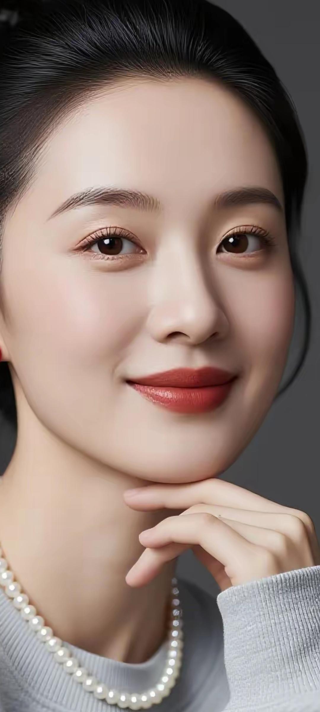 优雅气质,珍珠项链,温柔微笑,完美妆容,女神范儿