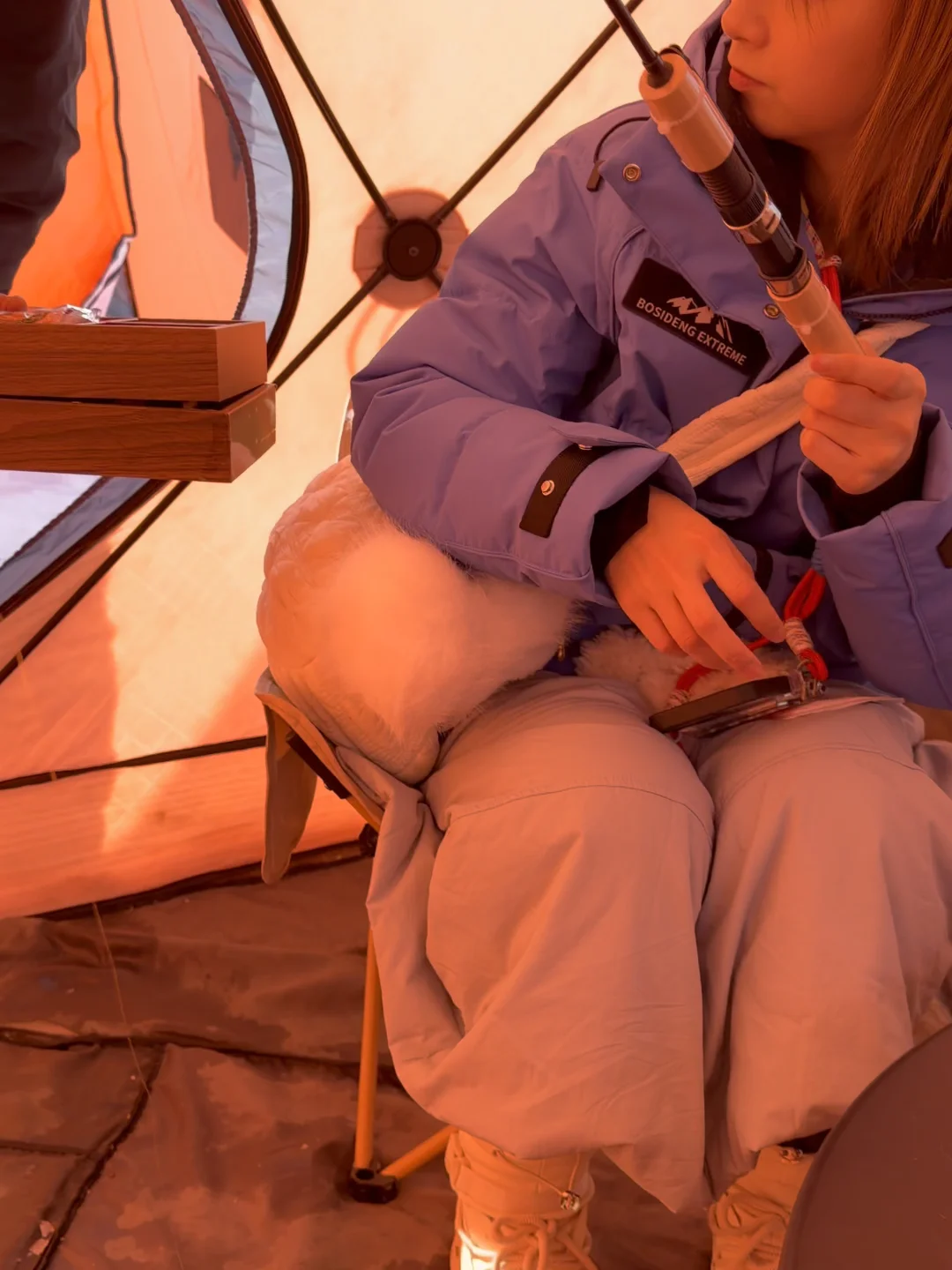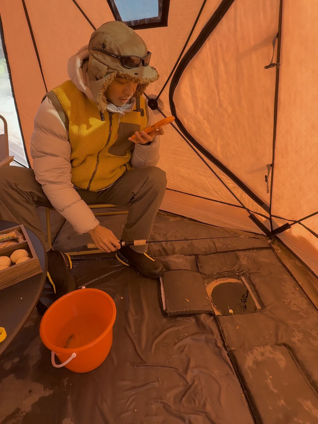 最后我们体验了一把帐篷下午茶版的冰钓