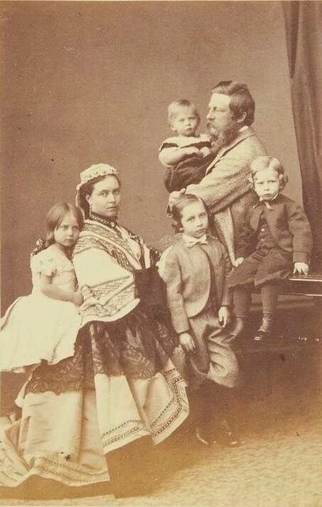 【来自投稿】1865年,德意志皇太子腓特烈一家。腓特烈皇太子和妻子英国公主维多利亚,他们的四个孩子—威廉王子、夏洛特公主、海因里希王子和西吉斯蒙德王子。