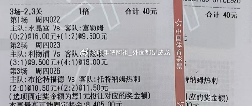 022 英超 01:30 水晶宫vs富勒姆方向:负 0-2 1-2023 英超 01:30 利物浦vs利兹联方向:让胜 3-1 4-1026 英超 04:00 布伦特vs热刺方向:2/4球 2-0 2-2
