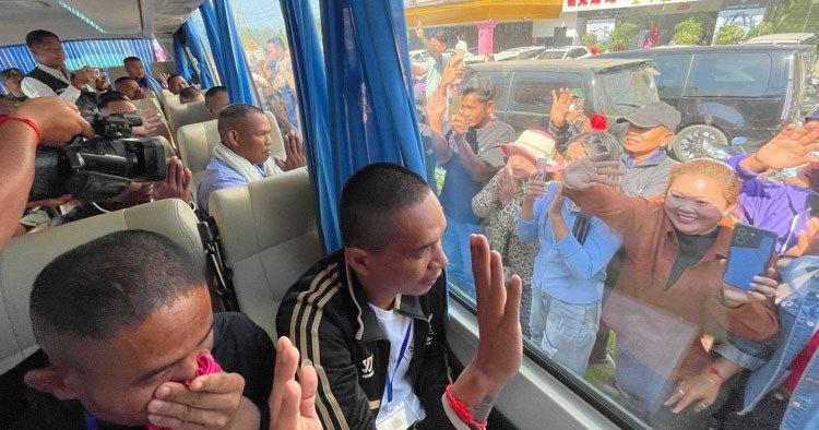 当地时间12月31日10时许,泰国军方在柬泰边境的拜林省边境口岸释放了此前扣押的18名柬埔寨士兵。这些柬埔寨士兵被扣押了155天。 泰国释放的18名柬军士兵回到柬埔寨一侧,受到热烈欢迎: 民族主义是永恒的