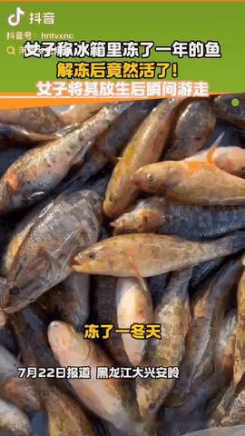 黑龙江,一女子把冰柜里冻了一年的老头鱼拿出来解冻,万万没想到,老头鱼竟然活了,她愣住了,最后她选择把它们放生。 信息来源:河南乡村频道 小祁是齐齐哈尔的一名上班族,趁着休年假在家大扫除,刚好翻出去年夏天捕捞、冻在冰柜里的老头鱼。 她随手接了盆自来水,把鱼丢进去解冻,以为拿出来就能做顿热乎饭。 谁想到忙完回头一看,盆里的几条鱼竟然在水里慢慢摆尾,还有两条直接扑腾着小身子游起来! 小祁当场懵了,连忙拿出手机录了视频。 视频发到网上后,评论炸开锅:有人惊呼“生命力太牛了”。 也有人怀疑“你家鱼到底冻了多久? 真冻一年不见融化?”东北网友赶紧科普:这种老头鱼学名葛氏鲈塘鳢(Perccottus glehni),又叫山胖头、沙姑鲈子、还阳鱼,主要分布在黑龙江、图们江、辽河等地的静水支流里。 它头扁体宽,动作本来就慢,在氧气少的水里也活得好,因为鳃里有特殊结构,能抗缺氧。 更厉害的是,老头鱼体内会分泌抗冻蛋白,遇寒时还会把肝糖原变成葡萄糖,再加上多糖物质一起降低细胞结冰点,细胞才不至于被冰晶戳破。 它们冬天就钻泥里待着,代谢几乎停下,像睡大觉一样,等春天冰化了再苏醒。 这回家用冰柜虽然比天然河冰更冷(零下十八度),但温度并不是死板不变,解冻也够缓和,于是让这命大的小鱼凑巧复活了。 看到这条“还阳鱼”拼劲十足地游进小河边,小祁当即放了它,让它回家过冬。 万千世界,无奇不有,有的动物生命力很顽强,尊重生命,有些鱼就是解冻了能复活。