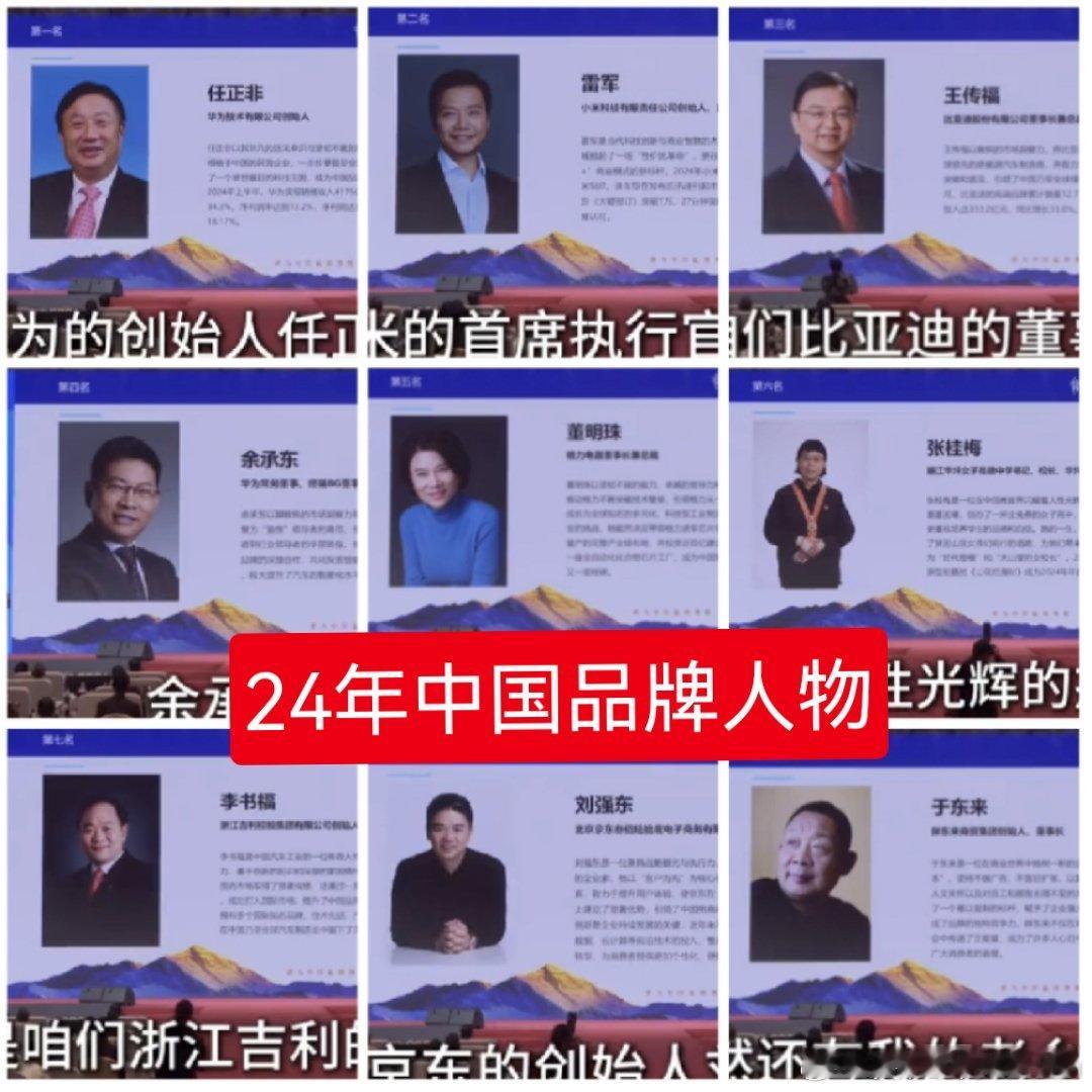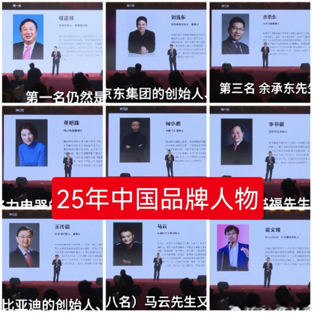 这一年发生了很多变化,华为的任正非和余承东依然引领中国品牌,小米的雷军掉出前9,京东的刘强东一飞冲天,这是发生了什么?24年中国品牌人物:1.任正非(华为) 2.雷军(小米) 3.王传福(比亚迪)4.余承东(华为) 5.董明珠(格力)6.张桂梅(教育)7.李书福(吉利)8.刘强东(京东)9.于东来(胖东来)25年中国品牌人物:1.任正非(华为) 2.刘强东(京东) 3.余承东(华为)4.董明珠(格力) 5.何小鹏(小鹏)6.李书福(吉利)7.王传福(比亚迪)8.马云(阿里巴巴)9.梁文锋(DS)
