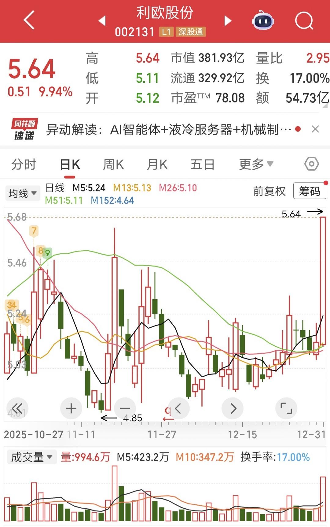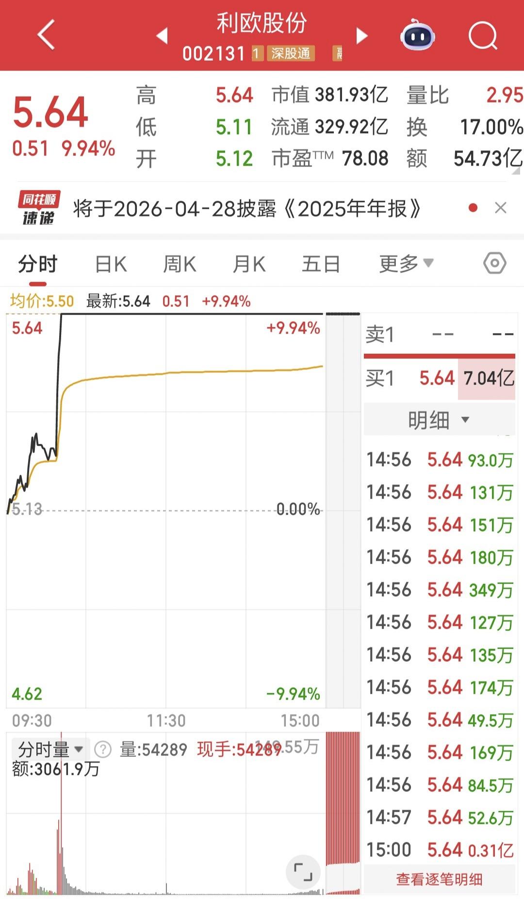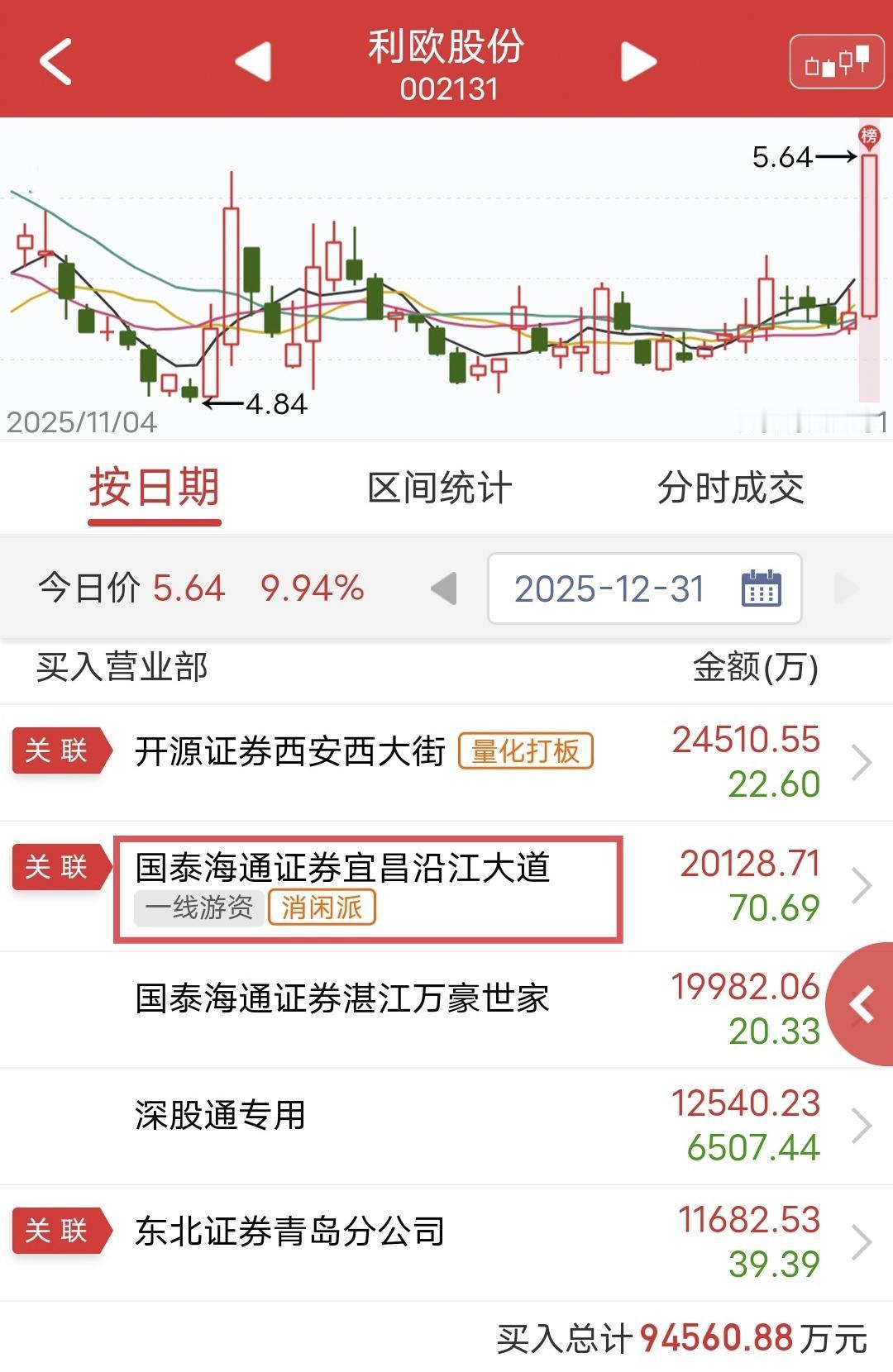 消闲派爆买2个亿: 周三利欧股份盘中涨停。 盘后龙虎榜显示,消闲派爆买2个亿。 不过一日游的概率比较大。 游资