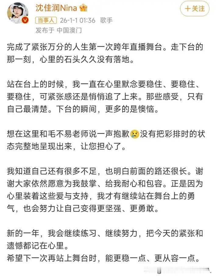 小沈阳这回回应女儿沈佳润唱歌跑调的事,真是让人不得不服。 他既没有像有的家长那样护短,也没给孩子找借口,而是发挥喜剧人本色,用一种自嘲又幽默的方式化解了尴尬。 小沈阳当时就说了:“加油,你还早着呢,你小叔(毛不易)我都没合作上,你就偷着乐吧。” 这话既鞭策了女儿要继续努力,别想一步登天,又顺势肯定了毛不易在乐坛的实力和成绩,给足了同行面子。 我觉得沈佳润有这样一位拎得清的父亲,以后的路肯定能走得长远。 小沈阳这态度特别正,沈佳润跑调就是跑调了,承认不足才能进步。这种不溺爱、不偏袒的教育方式,比单纯的吹捧要有意义得多,也给其他家长做了个好榜样。