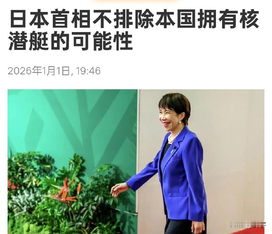 日本首相高市早苗首次不排除日本拥有核潜艇! 日本首相高市早苗今天又干了一件大事,这位执政以来频频突破日本政府传统底线的执政者,又开始试图拥有核潜艇了! 据日本媒体报道,高市早苗在接受媒体记者采访时就有关引入核潜艇可能性作回答时竟然表示:“我们不排除任何选项”,也就是说,高市早苗的言外之意就是日本可以拥有核潜艇,这就公然违背了日本和平宪法中最核心的规定“日本无核三原则”,这三大赢得全世界安心的无核三原则明确规定日本“不制造、不拥有、不运进核武器”。而今,高市早苗却将此轻描淡写到不存在一样,充分说明在她的内心谋划中,的确有突破日本无核三原则的打算,这就是值得全球警惕的一个坏兆头了,众所周知,高市早苗这种模棱两可的言论,恰恰就是政客的突破束缚前的试探,结合日本自高市早苗执政日本以来,日本政府一直在扩军增武路上狂奔的现实来看,高市早苗此时此刻能够放出这种话风来试探全球反应,说不定背地里早已经进行着相关行动了。因此,为了和平,全世界都应该警惕日本这种不断突破拥核底线的行为,行动起来坚决阻止日本迈向危险的步伐,避免世界重蹈二战覆辙。如此,不但是亚洲之幸,更是全球之幸!