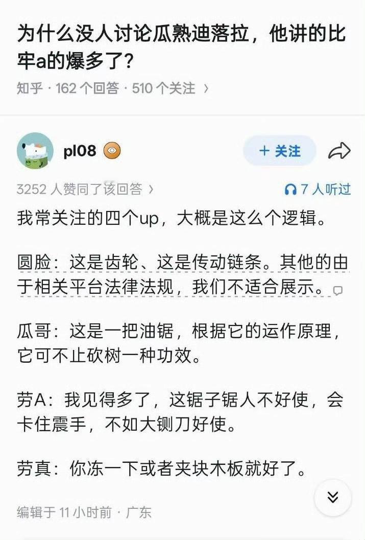 网友分享了用电锯分解高达的4种展示级别及差异。史称天启四骑士。 圆脸讲的这是齿轮、这是轴承、这是传动链条。网友:圆脸是“饥荒”。 瓜哥讲的是几十页的专业术语说明书,你很难看懂。当你听了牢A的,你就瞬间懂了。网友:“瓜哥是战争”。 牢A一上来,就直接把电源接通了,一切都通了,并亲自操作过电锯。网友:“牢A是瘟疫”。 牢真,牢A的直播搭子,比牢A见过更多的这种案例。是犹他州施耐庵,胆小的勿听。见过鞋教,见过rt气球,直面食肉王庭的传奇调查员。网友:牢真是“死亡”。 这四位真的是从下巢到上巢形成了个逻辑链路,从不同侧面展示了西大真实存在的底层代码。只要把他们说的东西联系起来,那就组成了一头基本的大象。