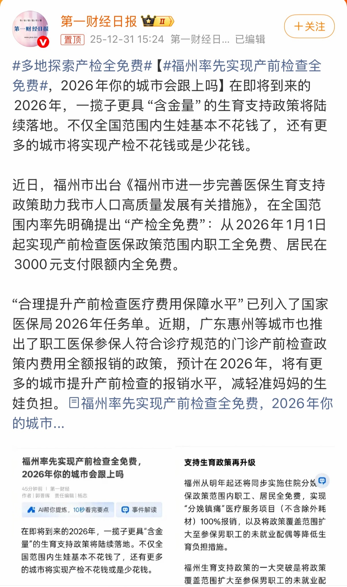 哈哈哈哈哈早生了一年,不过,恭喜2026年的家长宝宝们惹~~多地探索产检全免费