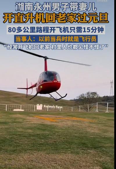 湖南永州有位陈先生最近因为开直升机带家人回老家过元旦火了一把。视频里,他两个儿子正用石头剪刀布决定谁坐前排,最后哥哥赢了,蹦蹦跳跳爬上座位。直升机升空后,永州的山水像画卷一样在窗外展开,十几分钟就降落在了村里的空地上。网友们看得直呼“这操作太硬核”,毕竟80多公里的路程,开车得一个多小时,开飞机直接缩短到一刻钟,连堵车的烦恼都省了。 陈先生可不是临时起意玩票。他早年在部队当过飞行员,退伍后转行做生意,攒下家底后,2023年花了500多万买了架罗比逊R44直升机。这飞机是四座轻型直升机,操作灵活,适合短途飞行。他平时在市区住,老家在东安县鹿马桥镇,两地直线距离不算远,但山路弯弯绕绕,开车总被堵在半路。自从买了飞机,他每周都带儿子回村看爷爷奶奶,有时候父亲想孙子了,一个电话他就开着飞机往家赶。村里人从最初的惊讶到现在的习以为常,甚至有老人坐过他的飞机后直夸:“这比坐汽车稳当,还能看风景!” 其实像陈先生这样开直升机回家的,早有先例。广西有位徐先生,和妻子在温州打拼多年,2024年春节时,他先把直升机用专业车辆运到广西百色,再从老婆娘家飞回自己老家,50多公里山路,飞行只要十几分钟。他特意选了春节回家,就是想让乡亲们看看“现在的生活有多不一样”。还有安徽的王先生,作为飞行教员,逢年过节都开两座直升机带女儿回亳州,300公里路程,飞行80分钟,比开车省两小时。他女儿早习惯了在飞机上睡觉,落地就精神抖擞地喊“到爷爷家啦”。 这些“空中通勤族”的共同点,除了有钱,更重要的是赶上了低空经济的好时候。国家这几年放宽了低空飞行限制,鼓励发展通用航空,像陈先生的公司就买了十几架飞机,除了自己用,还做旅游观光、飞行培训、应急救援。他说:“以前觉得飞机是奢侈品,现在国家支持,技术也成熟,买飞机就像买辆好车,是提升生活品质的选择。” 不过网友的评论也两极分化。有人羡慕:“这哪是回家,简直是科幻片!”也有人质疑:“花几百万买飞机,不如多陪陪父母。”但陈先生觉得,开飞机回家不仅是交通方式的升级,更是和家人分享生活的方式。每次降落时,儿子趴在窗边喊“爷爷我们回来啦”,父母举着伞在雨里等,这些画面比任何豪车都珍贵。对他来说,直升机不是炫耀的工具,而是连接城市和乡村、过去和现在的“时光机”。 来源:齐鲁晚报