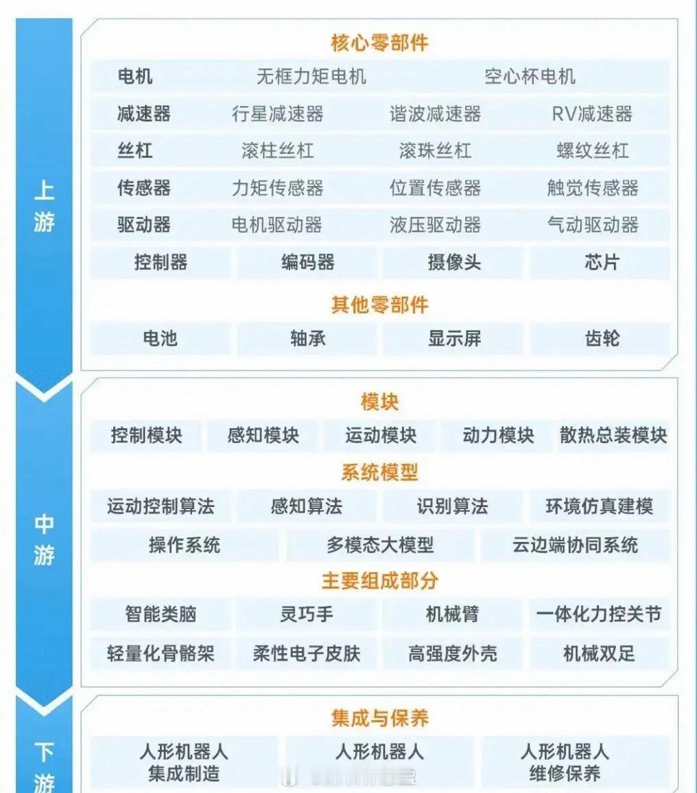 机器人板块龙头已现,梯队完整,必然是资金重点攻击的对象。2026年的第一天,梳理梳理机器人产业链及相关上市公司。一段时间,有一段时间的炒作概念,有的概念仅持续三五天,有的概念能持续一个月。就目前市场的主线看,航天,AI,机器人正当红。航天或许恐高了,但机器人、AI反复活跃,必定有可以抓住的机会。