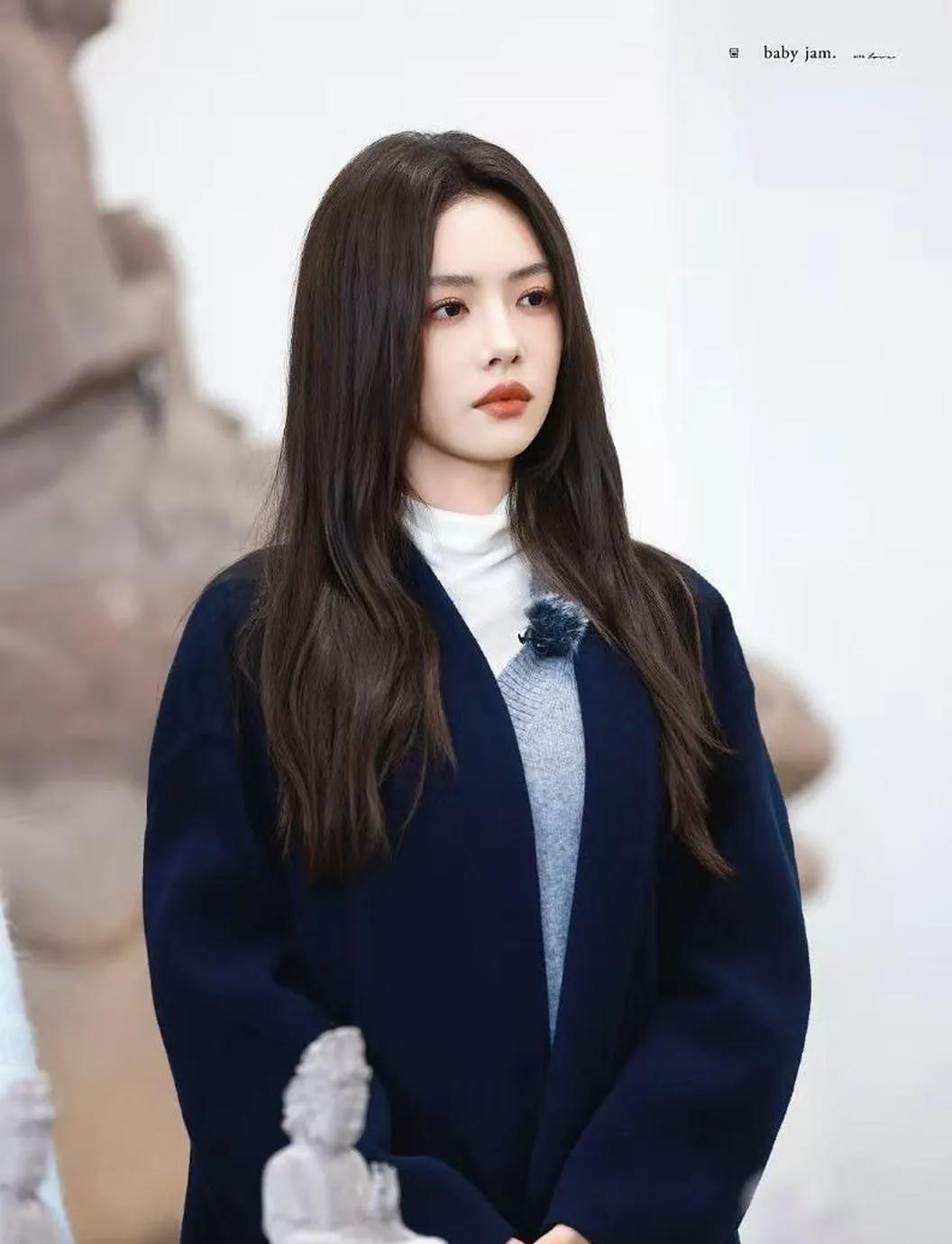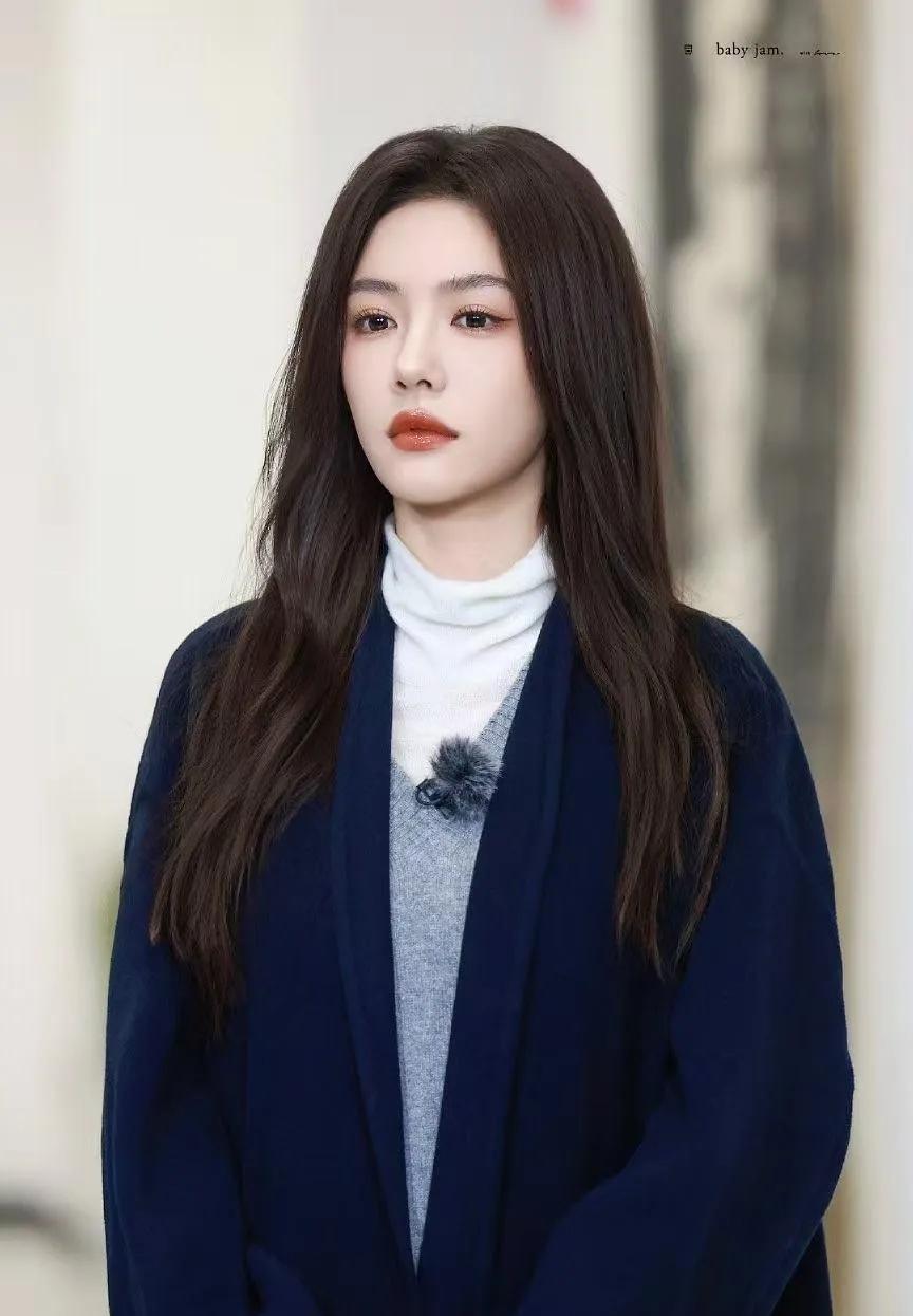 蔡文静的冬日氛围感穿搭,太会了❄️ 藏蓝色大衣叠穿灰色V领马甲和白色高领打底衫,层次感拉满。温柔又大气,简约不简单。 微卷长发配上精致妆容,慵懒又高级,轻松拿捏冬日氛围感。