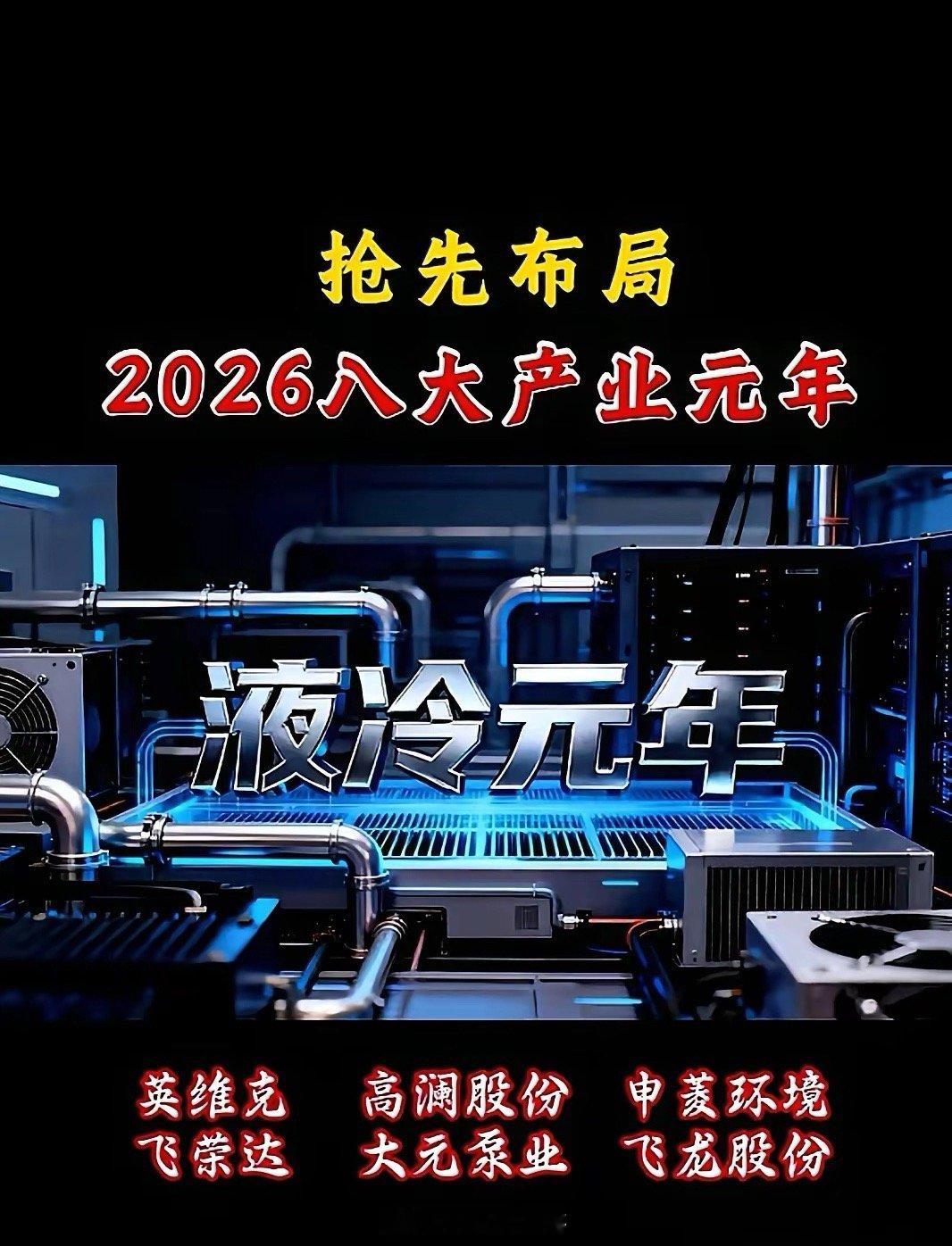 2026抢先布局,8大产业元年。产业1,以江西铜业、西部材料、紫金矿业等为代表的工业金属。产业2,以英维克、飞荣达、高澜股份等为代表的液冷领域。产业3,以海南发展、洲际油气、海南矿业等为代表的海南自贸区领域。产业4,以卧龙电驱、锋龙股份、三花智控、泰尔股份等为代表的人形机器人领域。产业5,以浙江世宝、北斗星通、山泽高科等为代表的无人驾驶领域。产业6,以电科网安、永鼎股份、航天电子、苏州科达、神州信息等为代表的量子计算领域。产业7,以雪人集团、王子新材、中超控股等为代表的可控核聚变领域。产业8,以航天发展、航天动力、再生科技、神剑股份等为代表的商业航天领域。