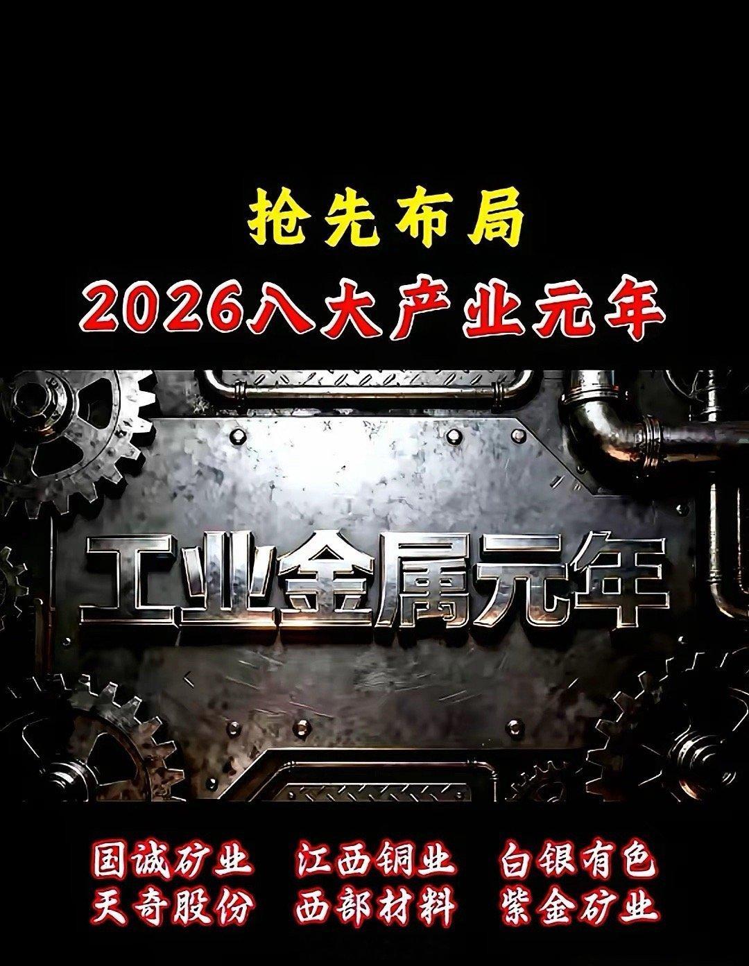 2026抢先布局,8大产业元年。产业1,以江西铜业、西部材料、紫金矿业等为代表的