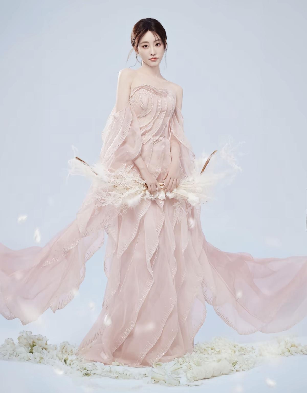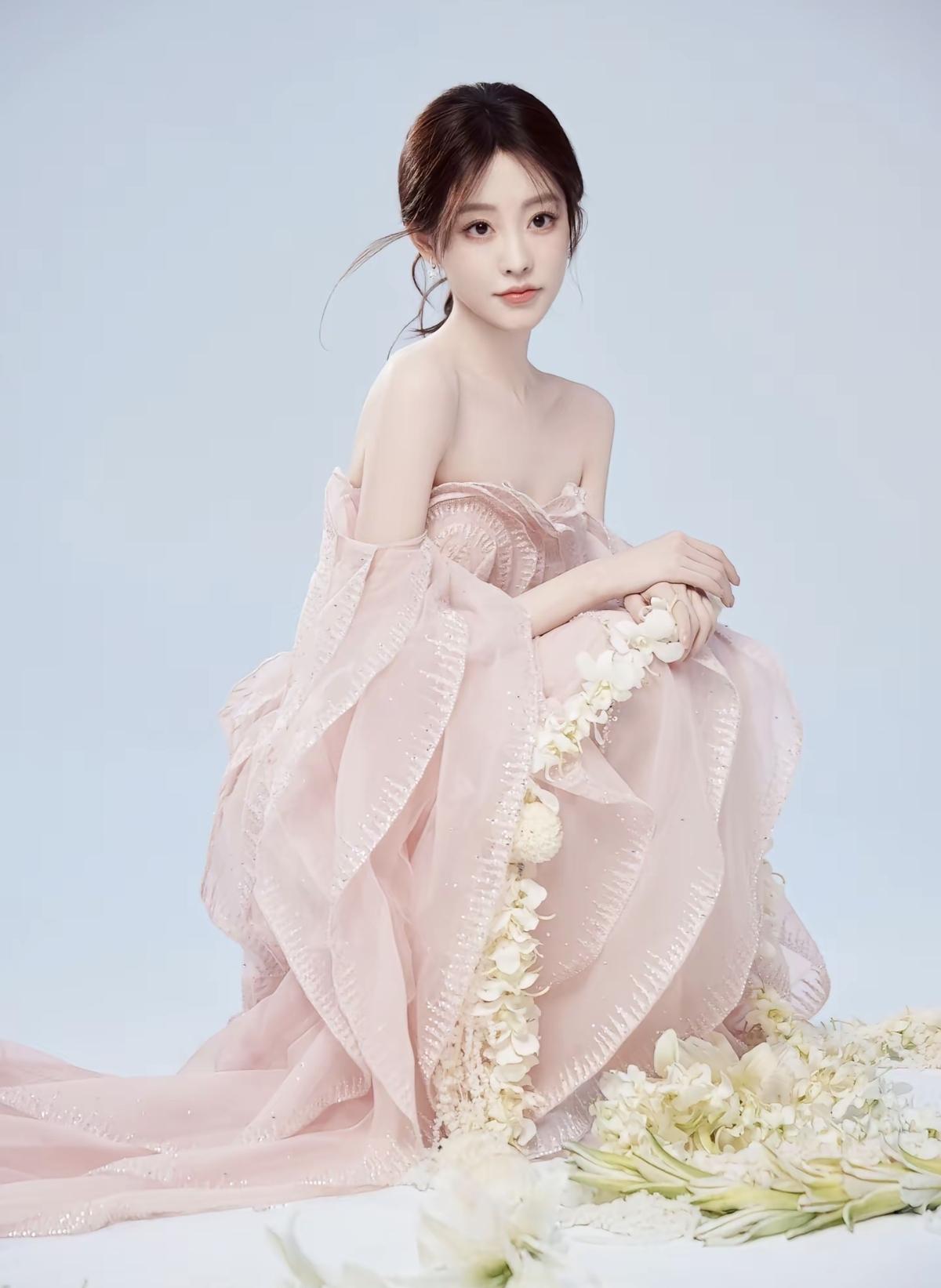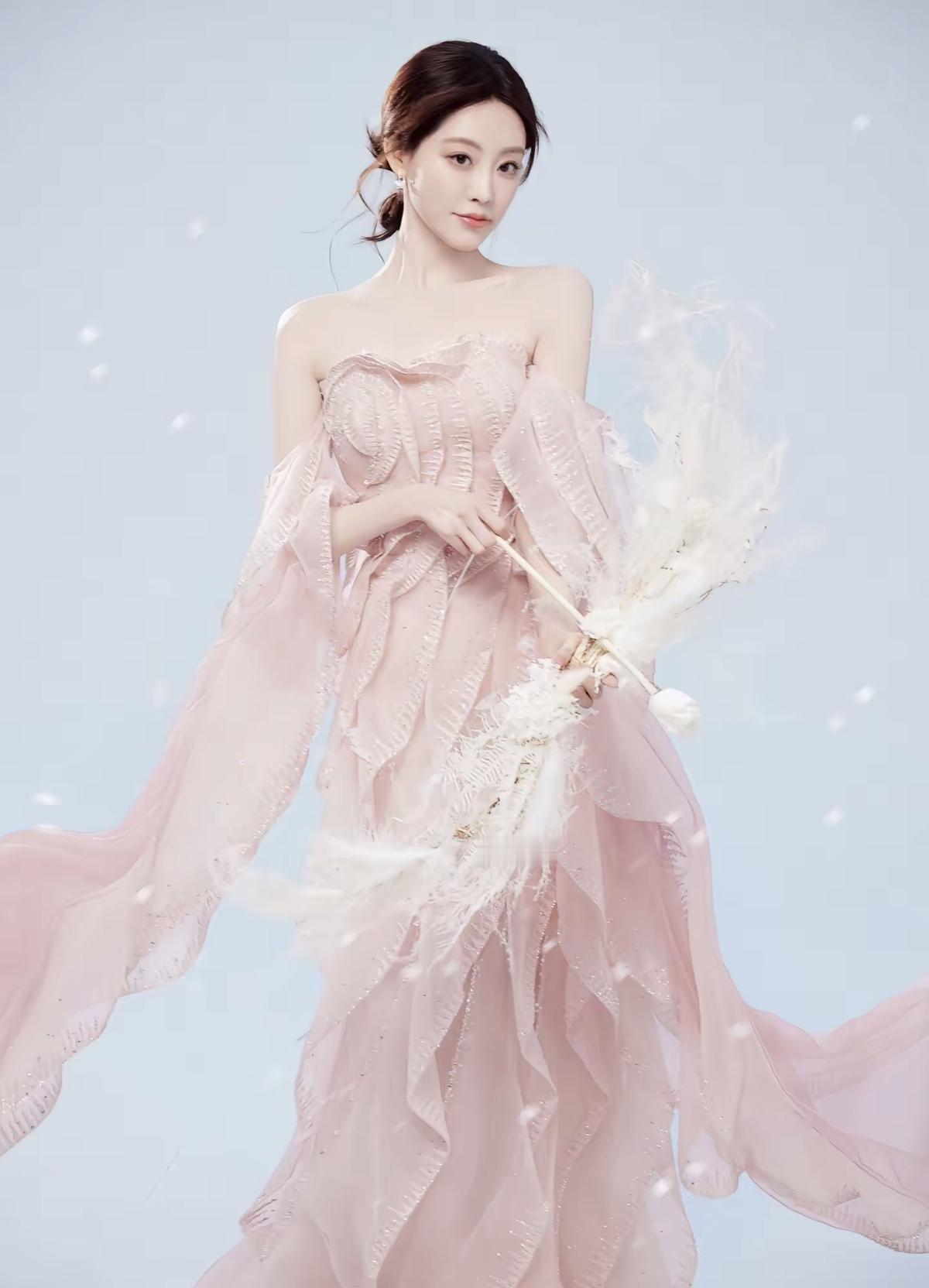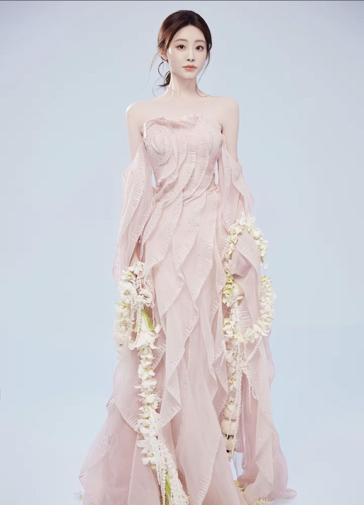 粉色层叠纱裙裹着春日的甜,祝绪丹的美,是藏不住的温柔与明媚[玫瑰]抹胸设计露出精致锁骨,层叠裙摆摇曳生姿,祝绪丹这一身,是行走的浪漫[比心]娱乐明星