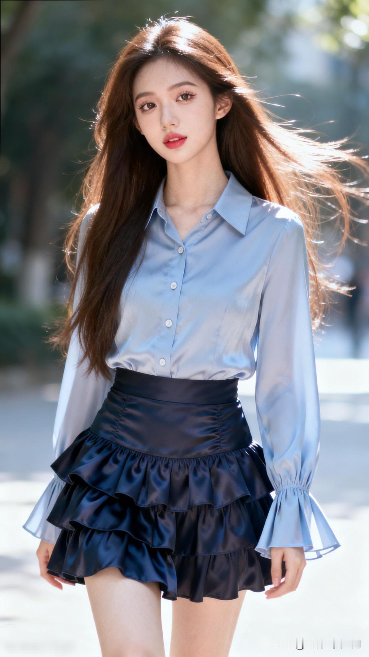 风拂长发飘,春日意正浓。女装穿搭分享推荐 元气少女穿搭指南:蓝白衬衫+黑色百褶裙,清新甜美,元气满满!💕👗👗