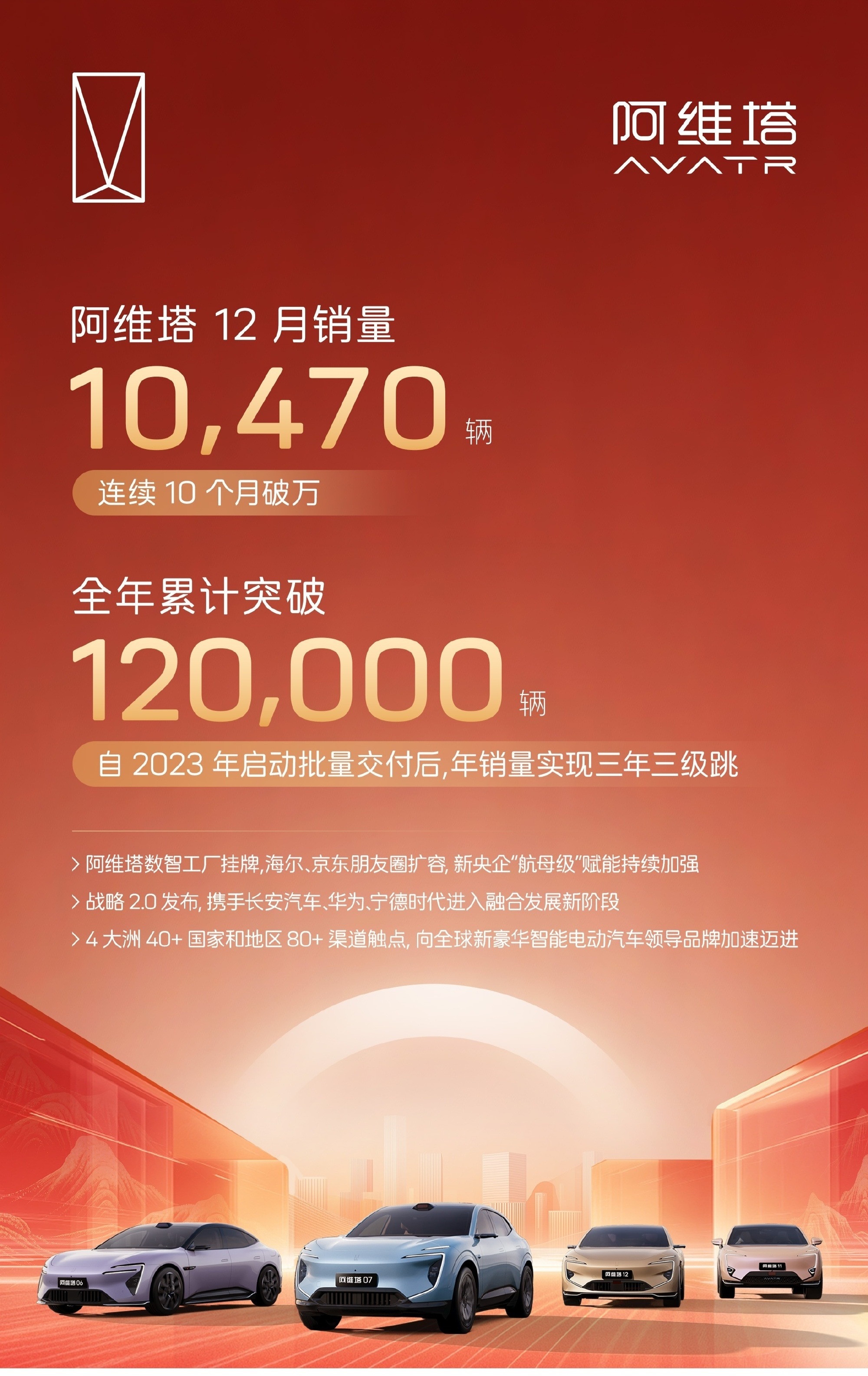 阿维塔,全年12万辆连续10个月破万海外市场25年铺的挺全面,明年看海外市场争取贡献个6-8万台?