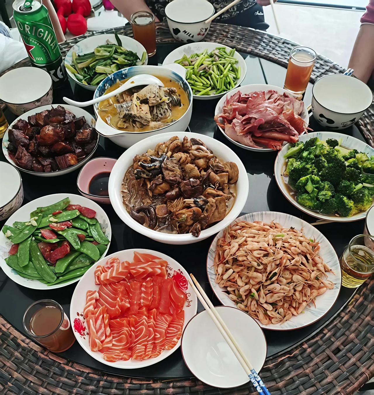 我们家兄弟姊妹群,昨天晚上就我跟我画家胞兄两家晒了年夜饭。在我们相当于年夜饭了。 图一是我画家胞兄家晒了菜,由于地理坐标截然不同,有好几道菜,在我是无法完成的。 我的画家胞兄16岁上大学,20岁就是当年哈尔滨师范学院艺术系教人物山水画的老师,后来担任过艺术系党支部书记。黑龙江省书画院创作室副主任,国内多家美术院校客座教授,国家一级画师。 我家兄弟除了我写段子,不学无术,在他们面前;其余皆为国内专家学者,奇葩的是我家长兄都76岁了,每天还坐在显微镜下,分析鉴定这个公章,那个签名是真的假的。 迄今为止没有一个人遛弯,跳广场舞,都在默默无闻工作着,所学也都互不搭边。 我们的母亲没有文化,却养育了一帮从小喜欢读书的孩子,长大了都有一门实实在在的本领,我们家人都在履行着一个格言,一辈子只做一件事儿,做精做好,不白来人间一次。所以胞兄们随便拽出来一个,皆能成为我的楷模,不用出家门看谁去。 我们兄弟姊妹不会有人享受退休生活的,因为他们没有退休观念。 我昨天招待老战友,他们说我做了十个菜,有三道功夫菜,一个是红烧肉,港风红烧肉。 我当年在大阪梅田第一 大厦12层 北京料理店打工,香港女厨漂亮的芸姐姐教我的,她说你认真跟我学,学好了,将来你回到你们大陆饿不死的。 芸姐姐大我10岁左右,我当年29岁,我喜欢闻她刚刚进后厨她身上的香奈儿香水味,她的秀发也总是湿露露的,她每天洗两遍澡,晚上回家泡澡,早上起来冲淋浴,然后拿吸尘器吸榻榻米上大长头发跟带卷的半寸长的毛。 她说过担心沾衣服上,坐地铁让人笑话。我今天,每天早上拿吸尘器吸地,就是跟芸姐姐学的。 芸姐姐,您现在要是一个人,假如能看到我这个小文,请联系我,咱们一起搭伙过日子。我们这年龄就剩下活着,没有男女那方面功能了,虽然有的时候也做春梦,但是,那是想死灰复燃。随时随地都揣硝酸甘油的人了,活着就是胜利! 我还做了一道大菜,我老战友说,好吃,真他妈的好吃,土鸡烀蘑菇粉条。 还有一道菜我是用5斤橄榄坝水库罗非鱼炖百香果,老战友喝了五碗鱼汤,说,克非你老小子真没想到还有这两下子。