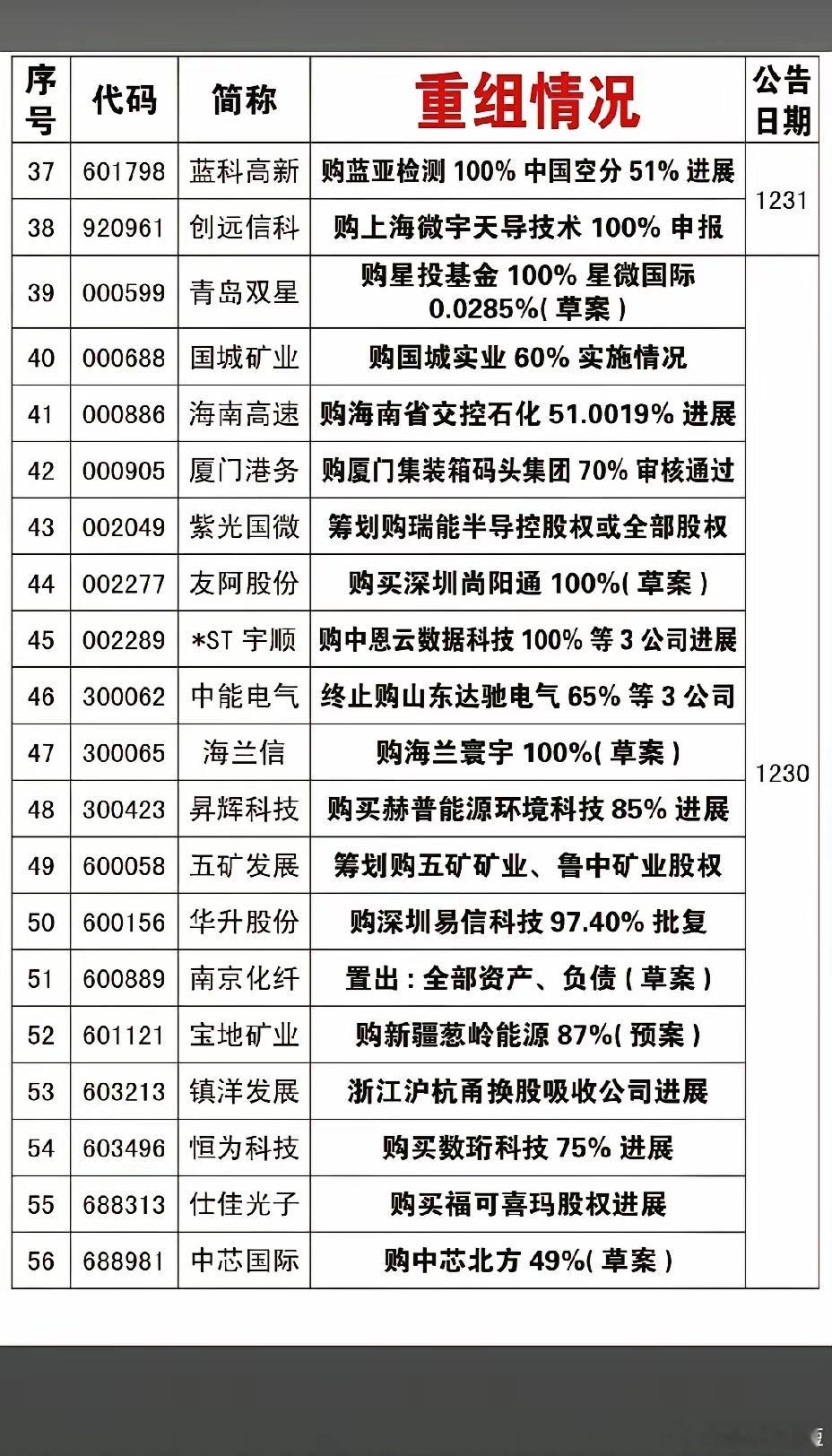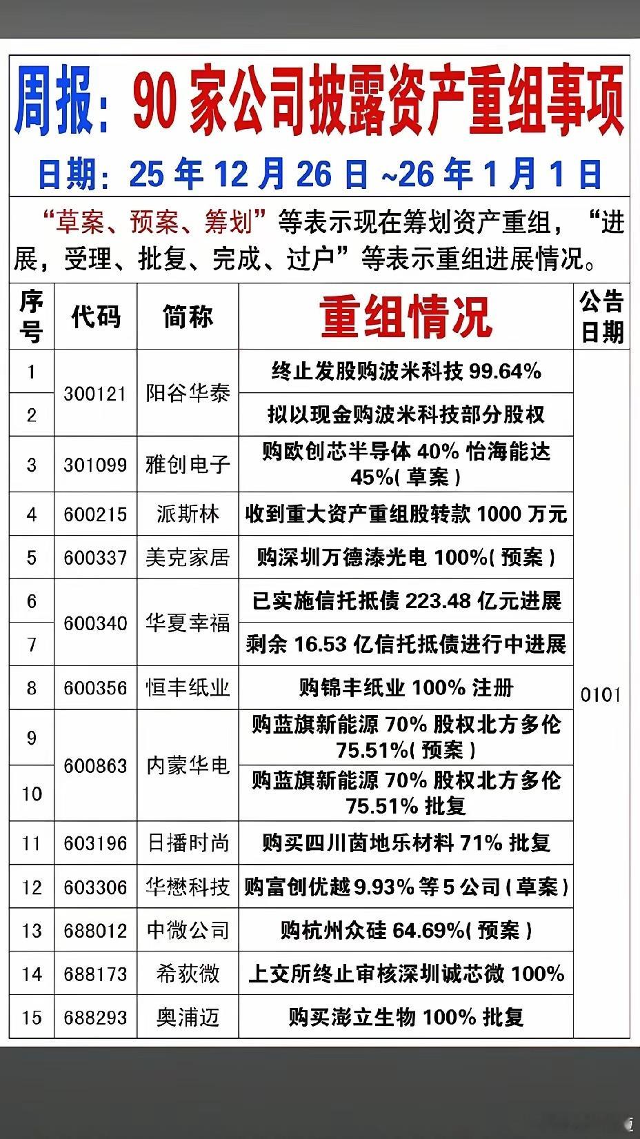 1月1日,节后A股这些股票有望大涨!!!90家公司披露资产重组事项,重点关注:美克家居购深圳万德泰光电100%预案,后市值得高看一眼;日播时尚购买四川茵地乐材料71%批复,后市值得重点关注;分众传媒购成都新潮传媒集团90.02%股权,后市值得期待!!!股市分析