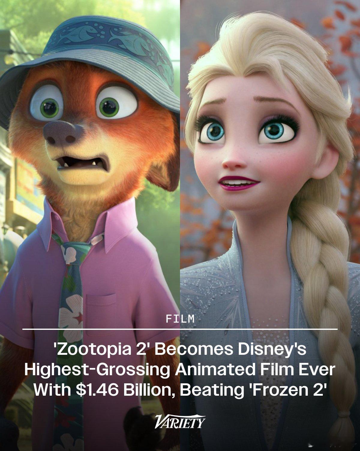 《疯狂动物城2》全球累计票房已达14.6亿美元!!超越《冰雪奇缘2》的14.5亿美元!创造迪士尼本部动画最高票房纪录!恭喜!!其中中国内地票房达40.205亿元/5.75亿美元!是最大票仓!助攻海外累计票房高达11.3亿美元!北美本土票房达3.33亿美元!(图2)是迪士尼发官方手绘新图庆祝《疯狂动物城2》成为迪士尼本部动画工作室最高票房影片!!