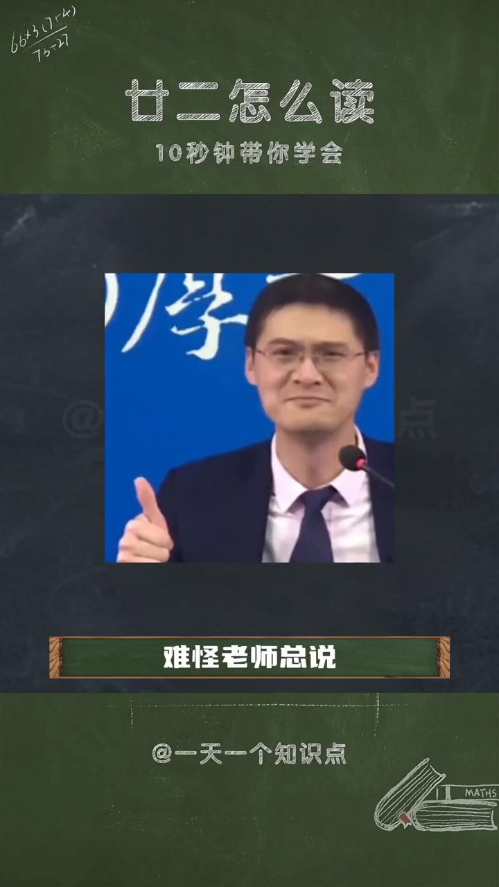 廿二怎么读?10秒钟带你学会。 一天一个知识点。 难怪老师总说你们是我带过最差的一届,怎么还有人把日历上的这个字读成gan?这个字读念是20的意思,30是撒,40是xi,50叫虚,60叫圆,70叫jin,80叫枯,90叫画,100叫bai,200叫闭。