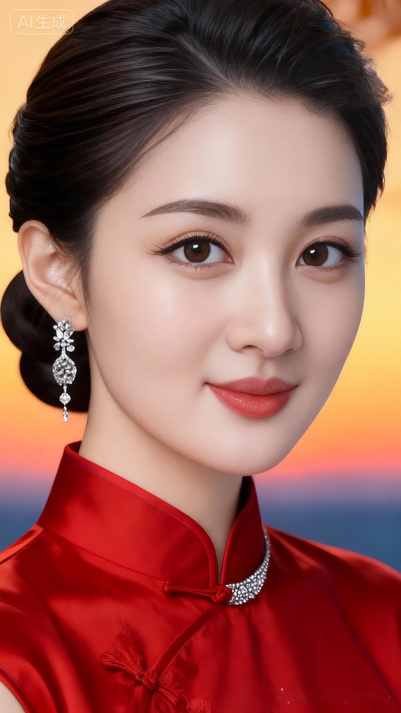 优雅红装,闪耀耳环,尽显东方魅力!💃💍✨