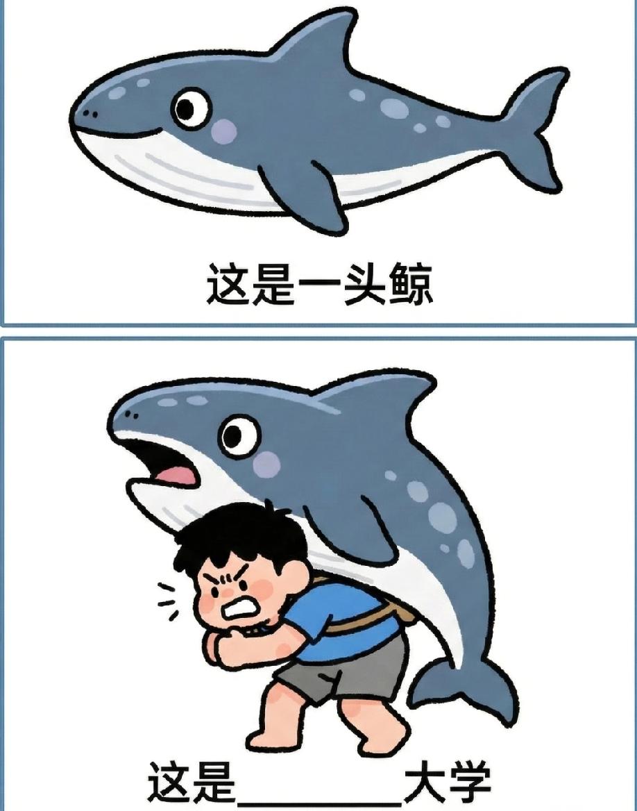 绝了!这张鲸的脑洞图火了,填大学名的答案笑死人,评论区来答