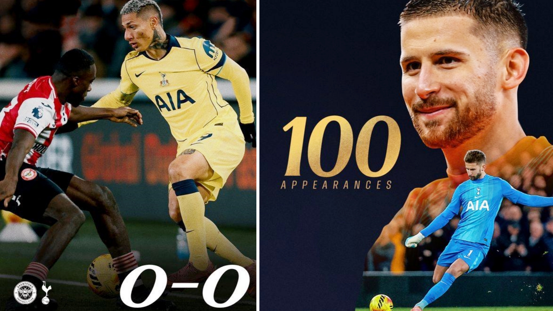 英超:热刺客场0-0闷平布伦特福德,近4轮仅取1胜。 维卡里奥神扑,罗梅罗造争议判罚。